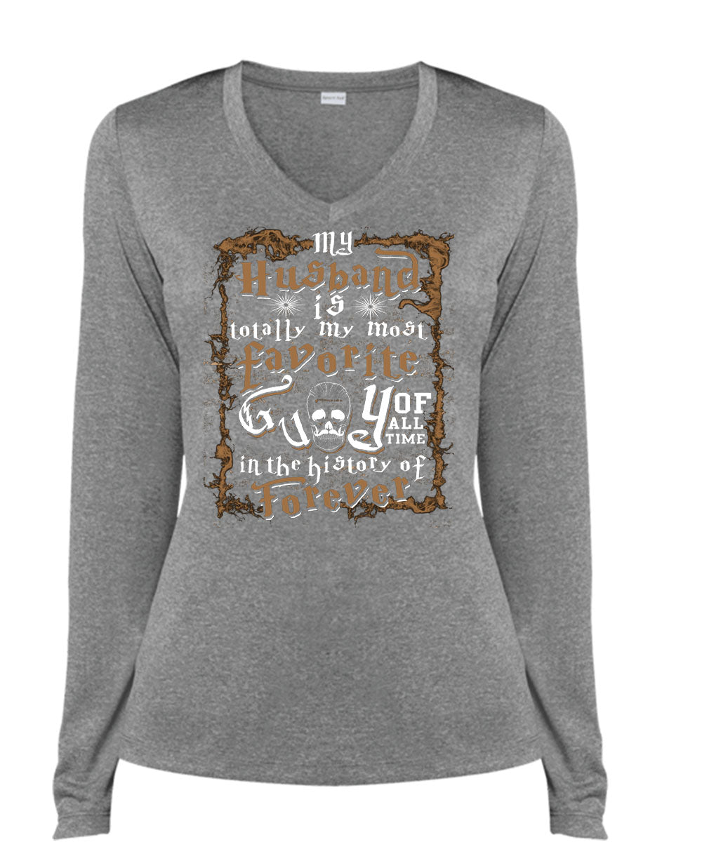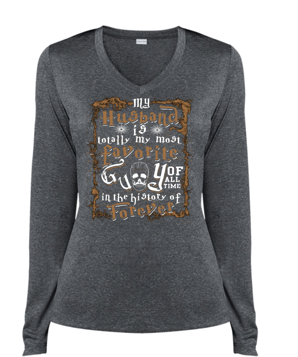 My Husband Is Totally My Most Favorite T Shirt, I'm A Wife T Shirt, Cool Shirt (Ladies LS Heather V-Neck)