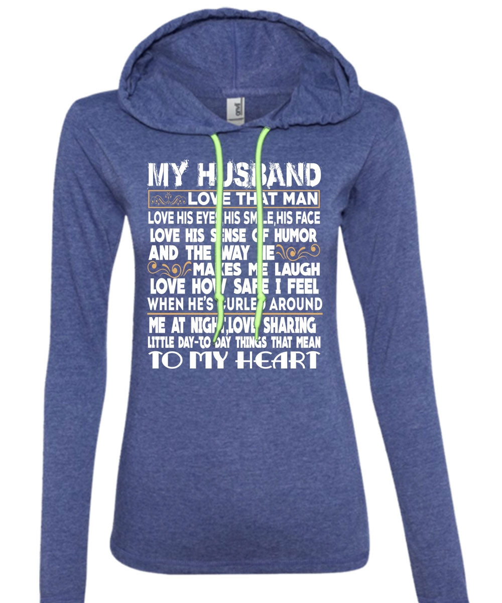 My Husband Love T Shirt, Man Love His Eyes T Shirt (Anvil Ladies Ringspun Hooded)