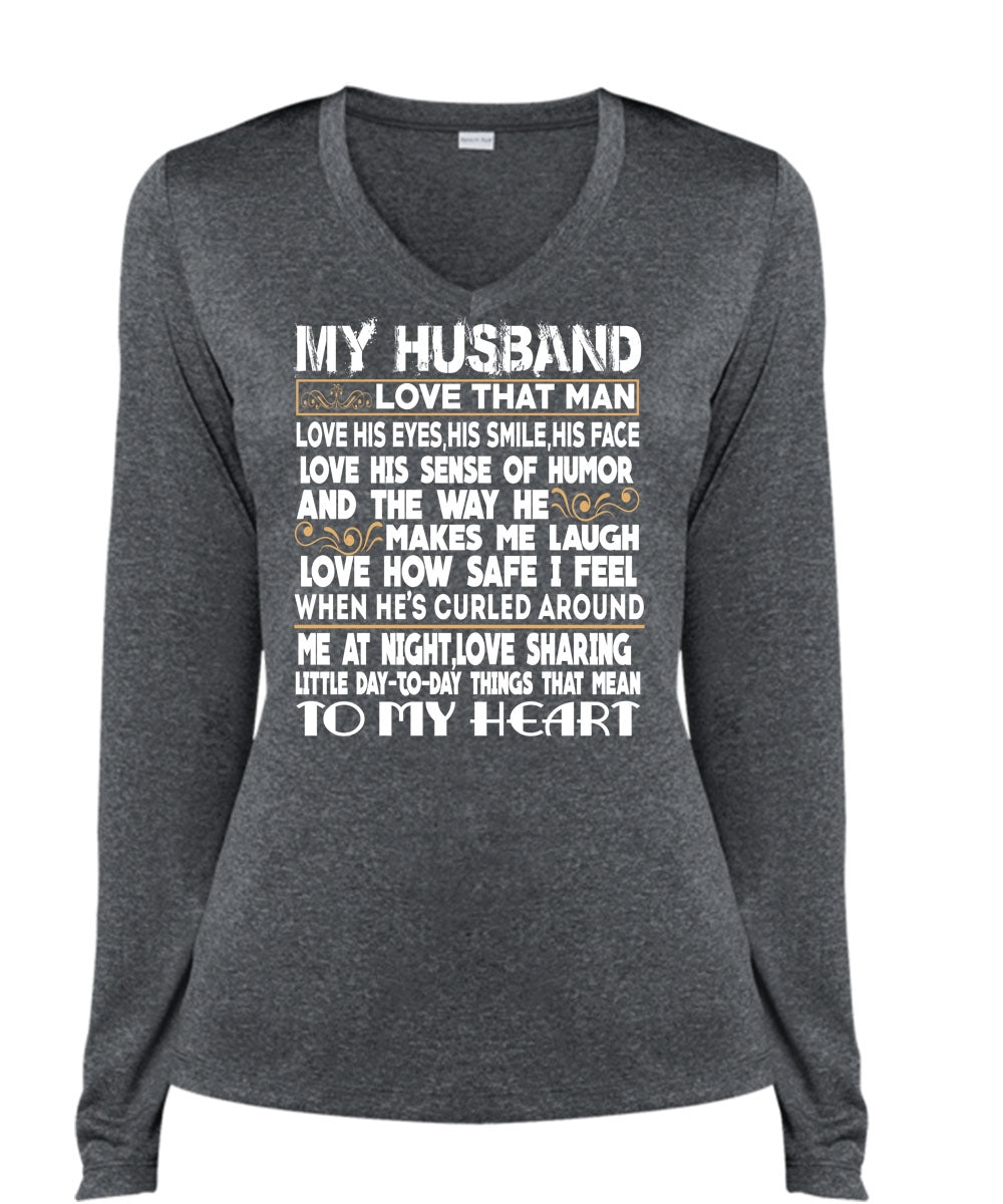 My Husband Love T Shirt, Man Love His Eyes T Shirt, Cool Shirt (Ladies LS Heather V-Neck)