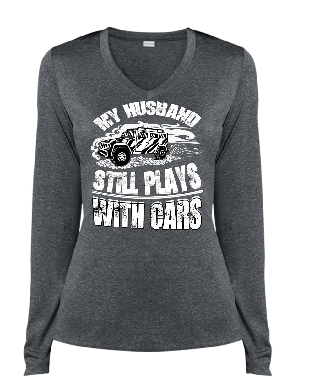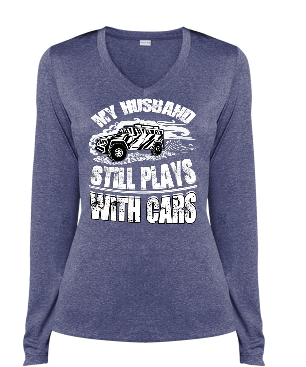 My Husband Still Plays With Cars T Shirt, Being A Driver T Shirt, Cool Shirt (Ladies LS Heather V-Neck)