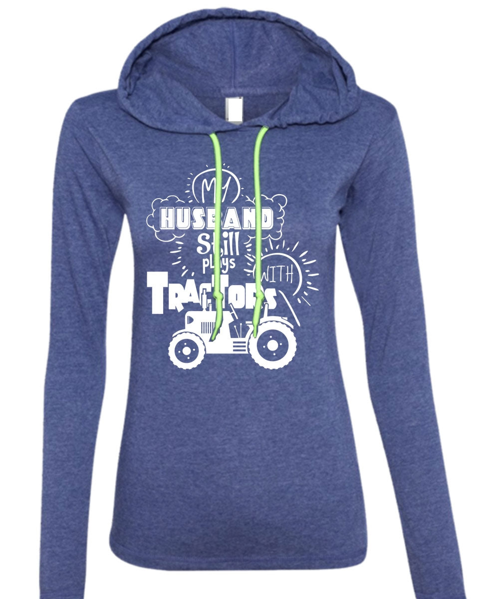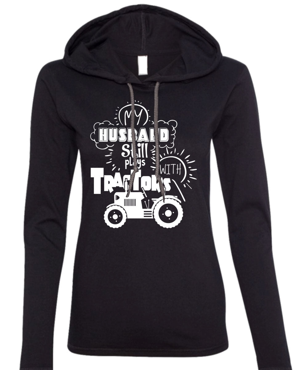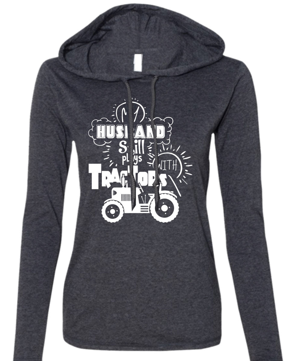 My Husband Still Plays With Tractors T Shirt, Being A Farmer T Shirt (Anvil Ladies Ringspun Hooded)