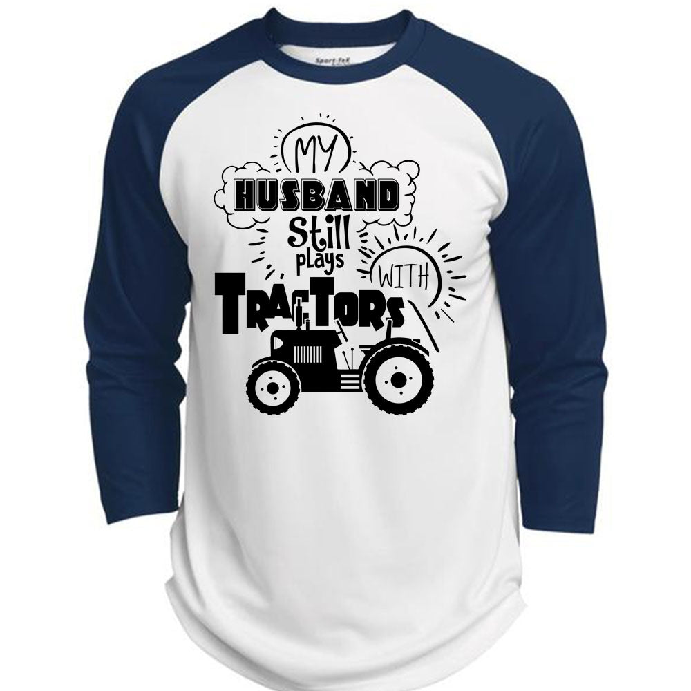 My Husband Still Plays With Tractors T Shirt, I Love Farming T Shirt, Awesome T-Shirts (Polyester Game Baseball Jersey)
