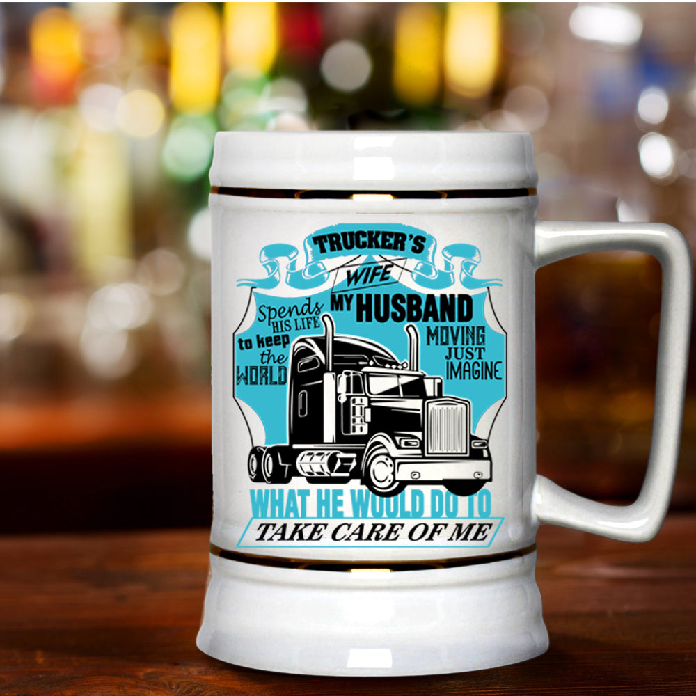 My Husband Take Care Of Me Beer Stein 22oz, Trucker's Wife Beer Mug