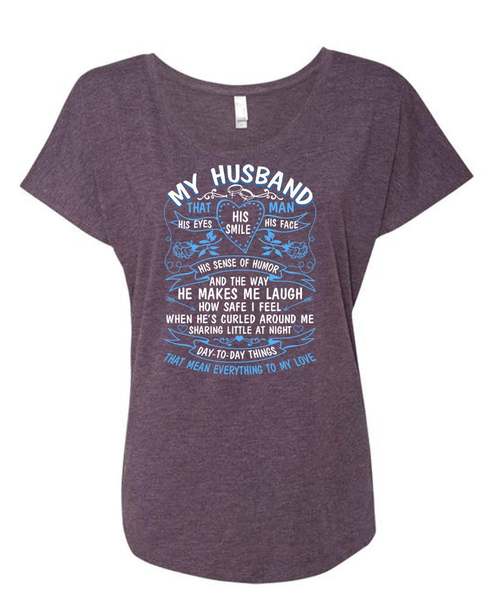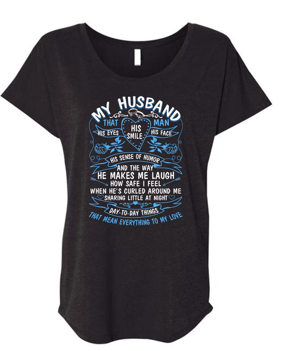 My Husband That Man T Shirt, He Makes Me Laugh T Shirt, Cool Shirt (Ladies' Triblend Dolman Sleeve)