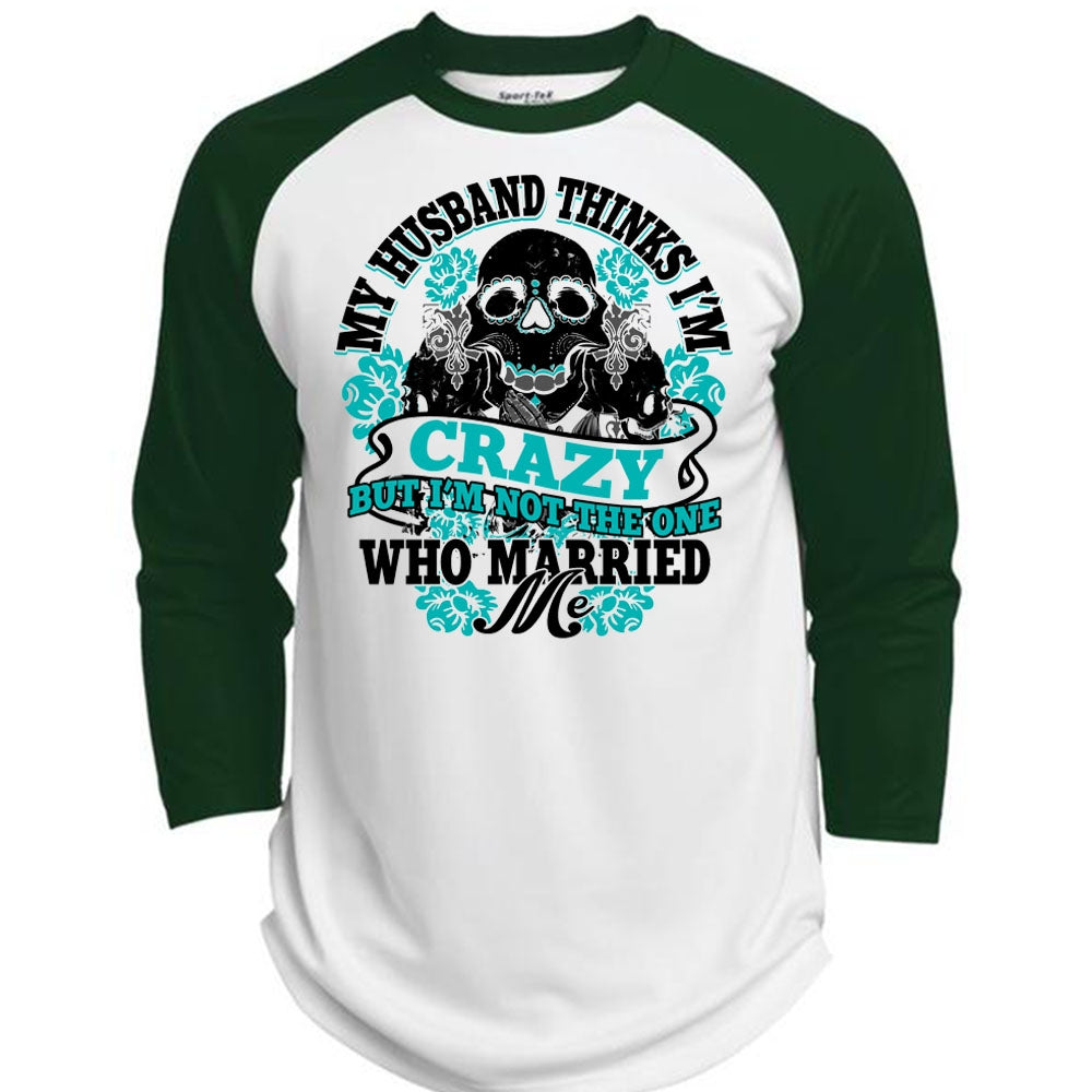 My Husband Think I'm Crazy T Shirt, I Love Husband T Shirt, Awesome T-Shirts (Polyester Game Baseball Jersey)