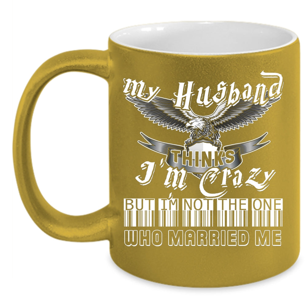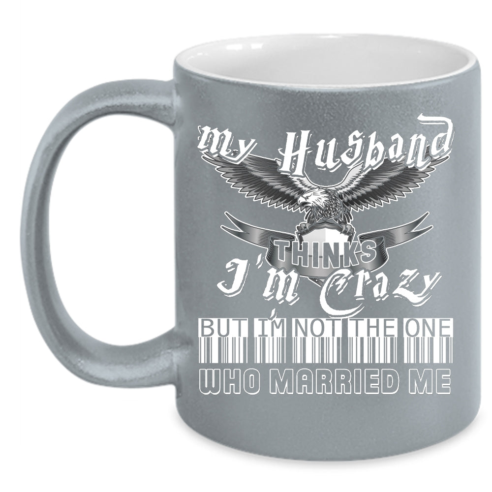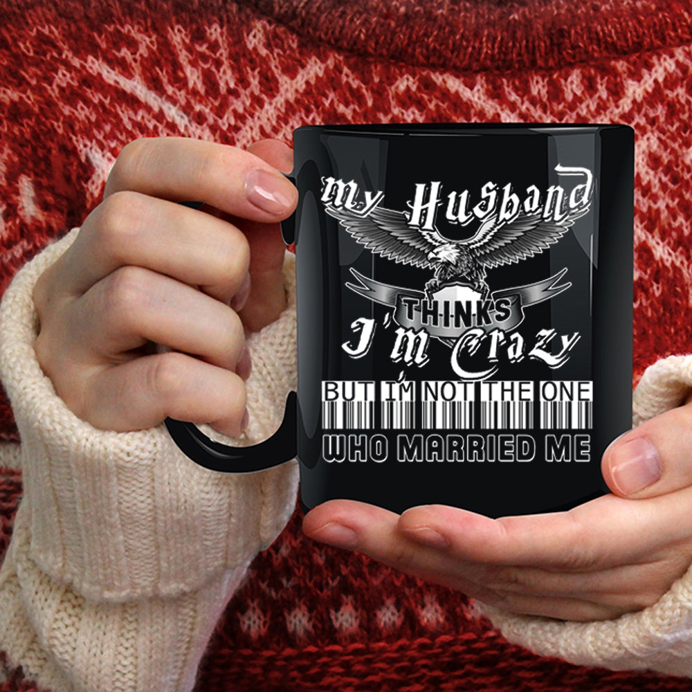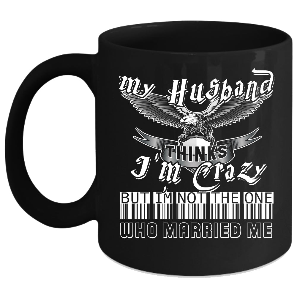 My Husband Thinks I'm Crazy Coffee Mug, Beautiful Wife Coffee Cup