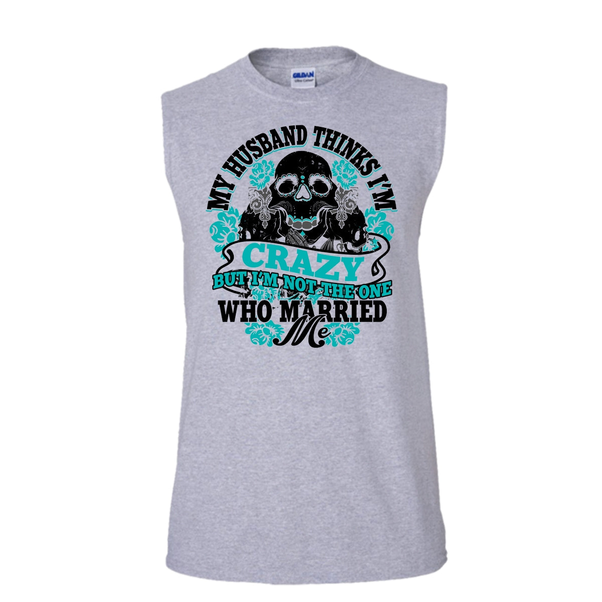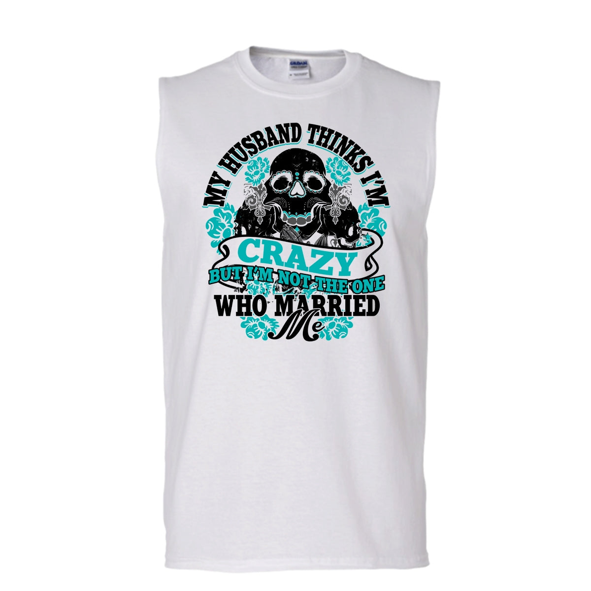 My Husband Thinks I'm Crazy T Shirt, Awesome Husband T Shirt, Awesome t-shirts (Men's Cotton Sleeveless)