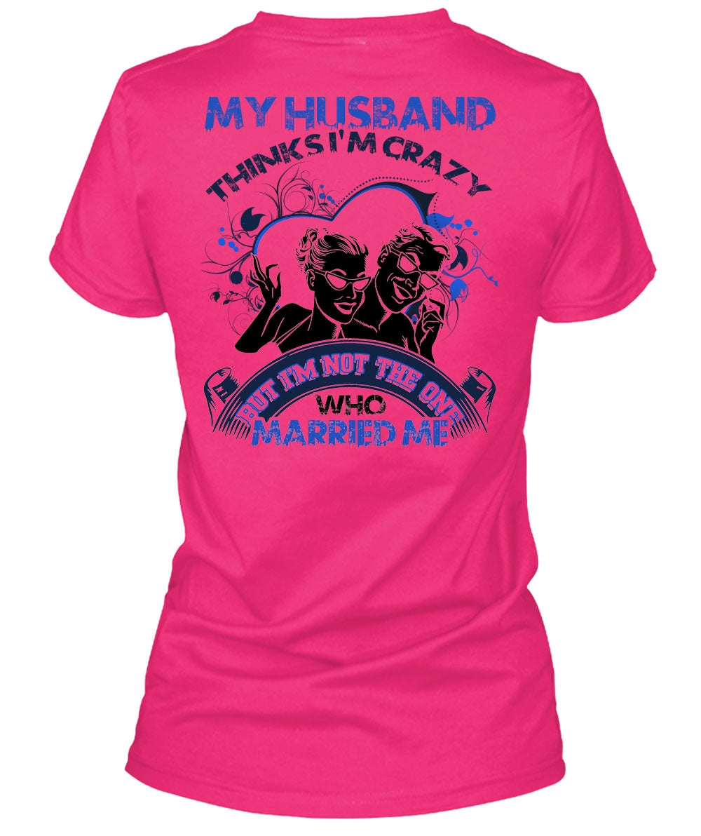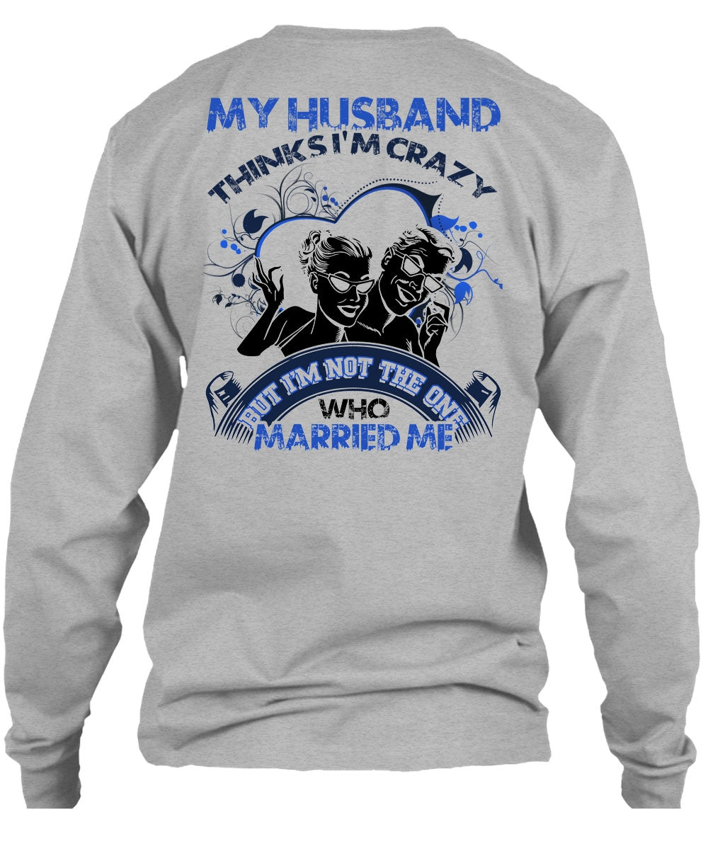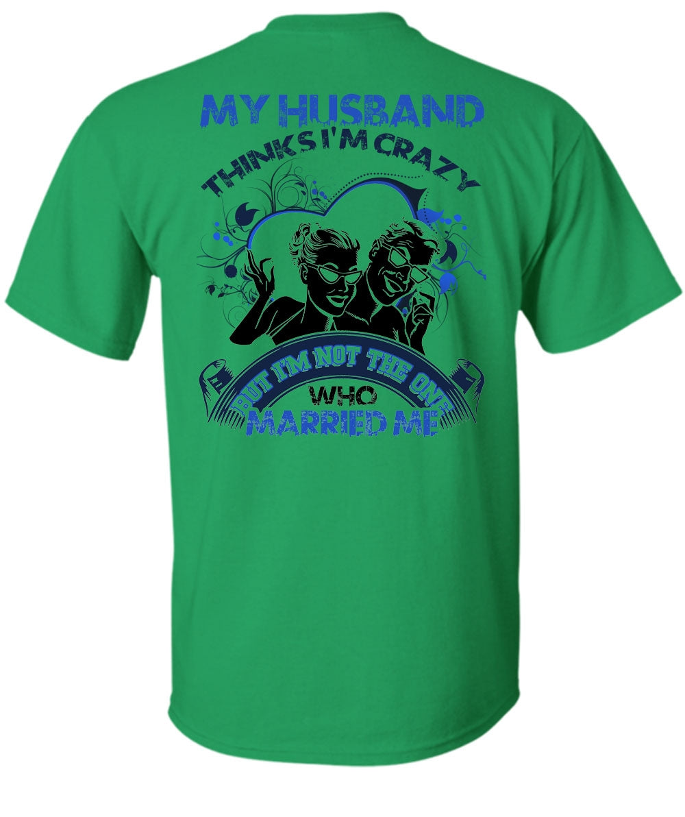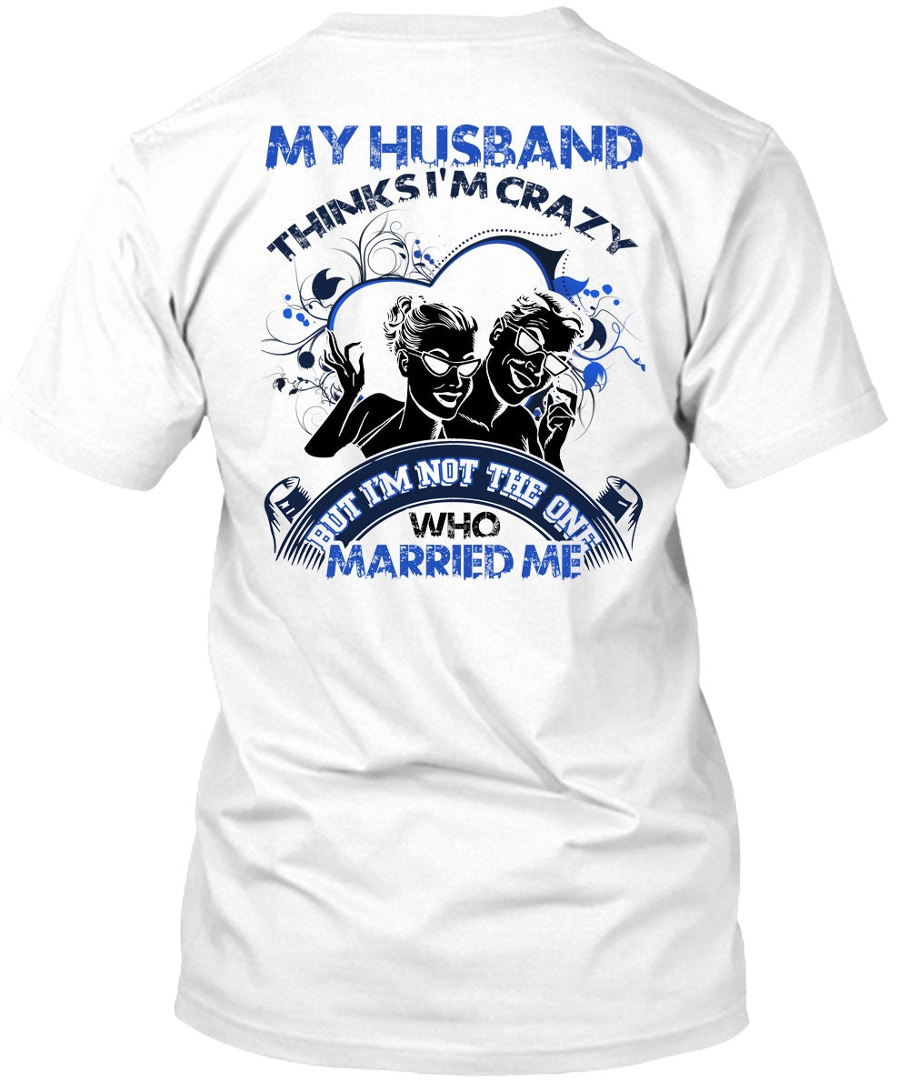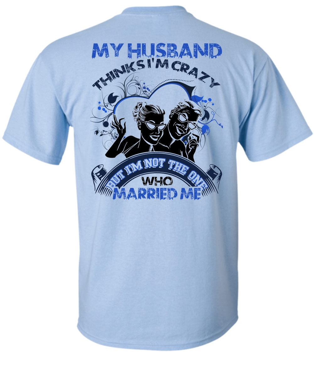 My Husband Thinks I'm Crazy T Shirt, I Love Husband T Shirt