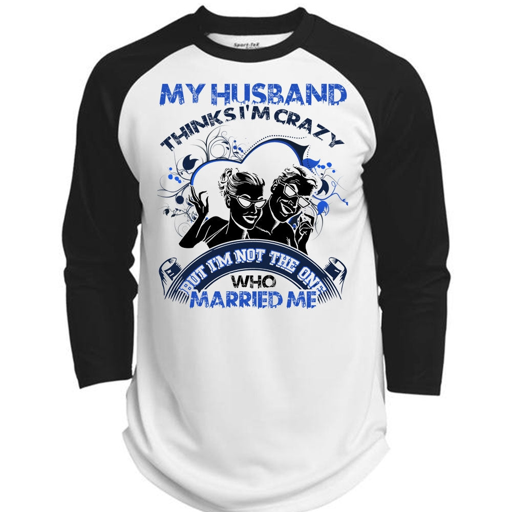 My Husband Thinks I'm Crazy T Shirt, I Love Husband T Shirt, Awesome T-Shirts (Polyester Game Baseball Jersey)