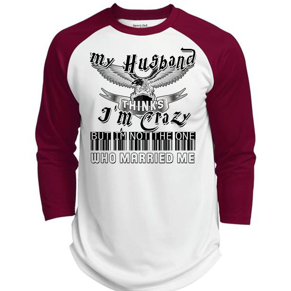 My Husband Thinks I'm Crazy T Shirt, I Love My Husband T Shirt, Awesome T-Shirts (Polyester Game Baseball Jersey)