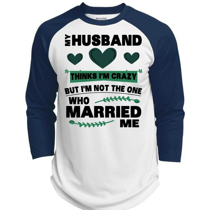 My Husband Thinks I'm Crazy T Shirt, I Love My Wife T Shirt, Awesome T-Shirts (Polyester Game Baseball Jersey)