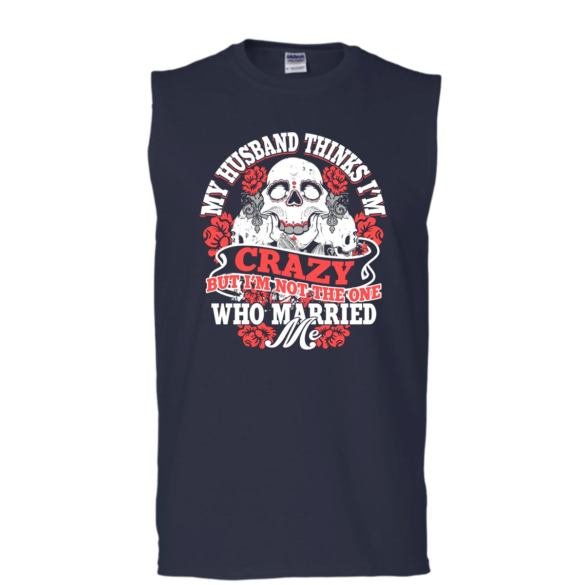 My Husband Thinks I'm Crazy T Shirt, I'm Not The One Who Married Me T Shirt, Cool T Shirt (Men's Cotton Sleeveless)