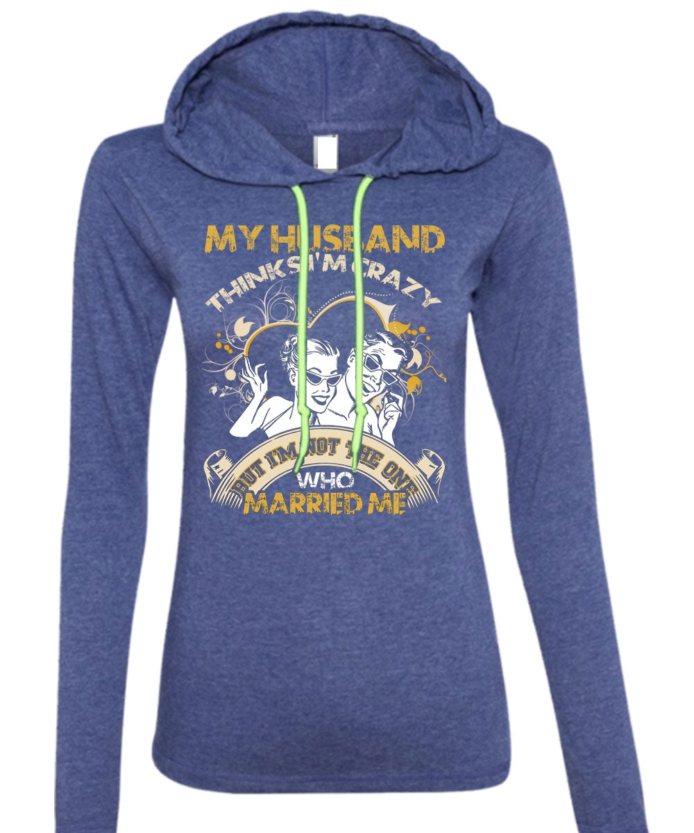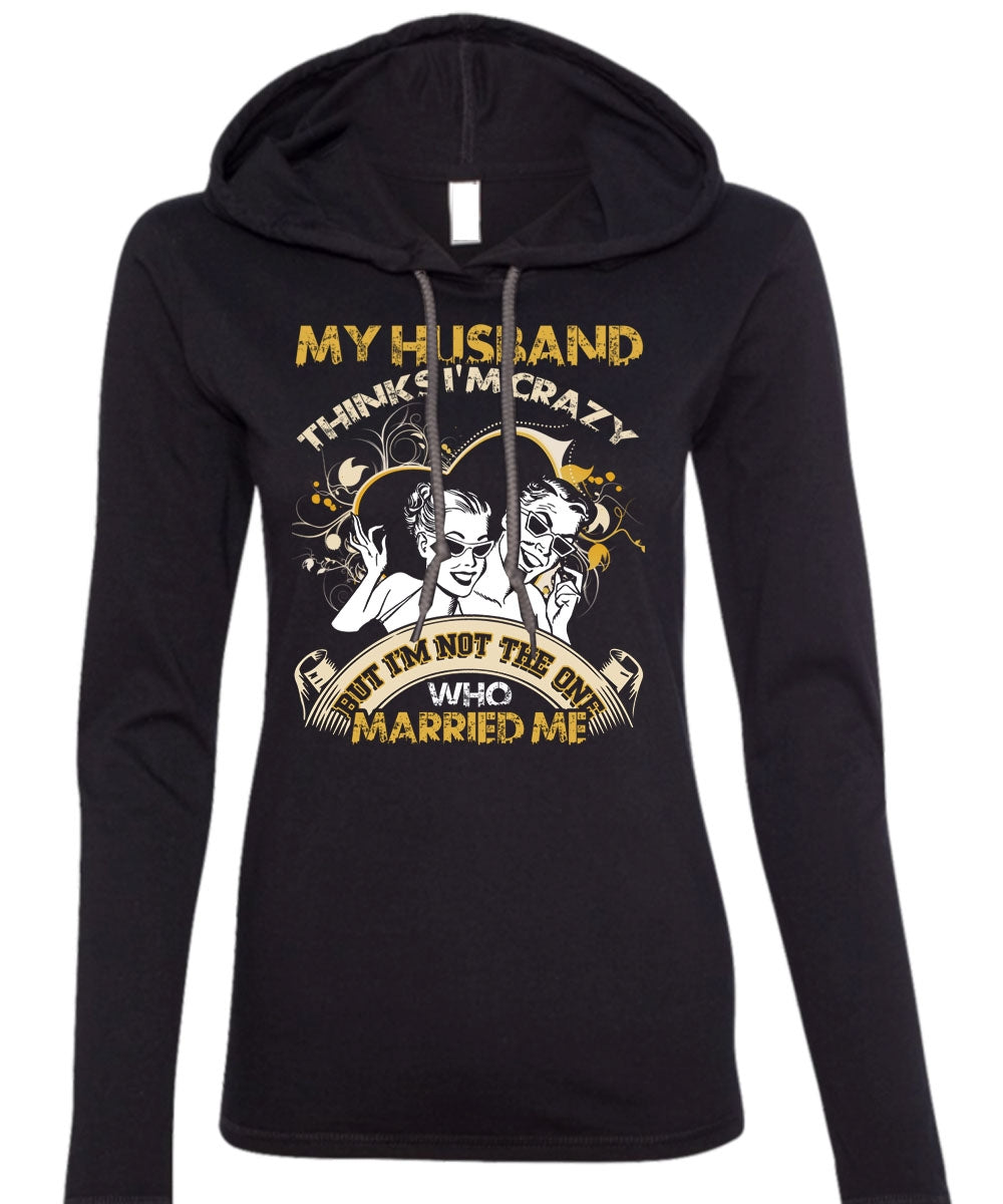My Husband Thinks I'm Crazy T Shirt, Married Me T Shirt (Anvil Ladies Ringspun Hooded)