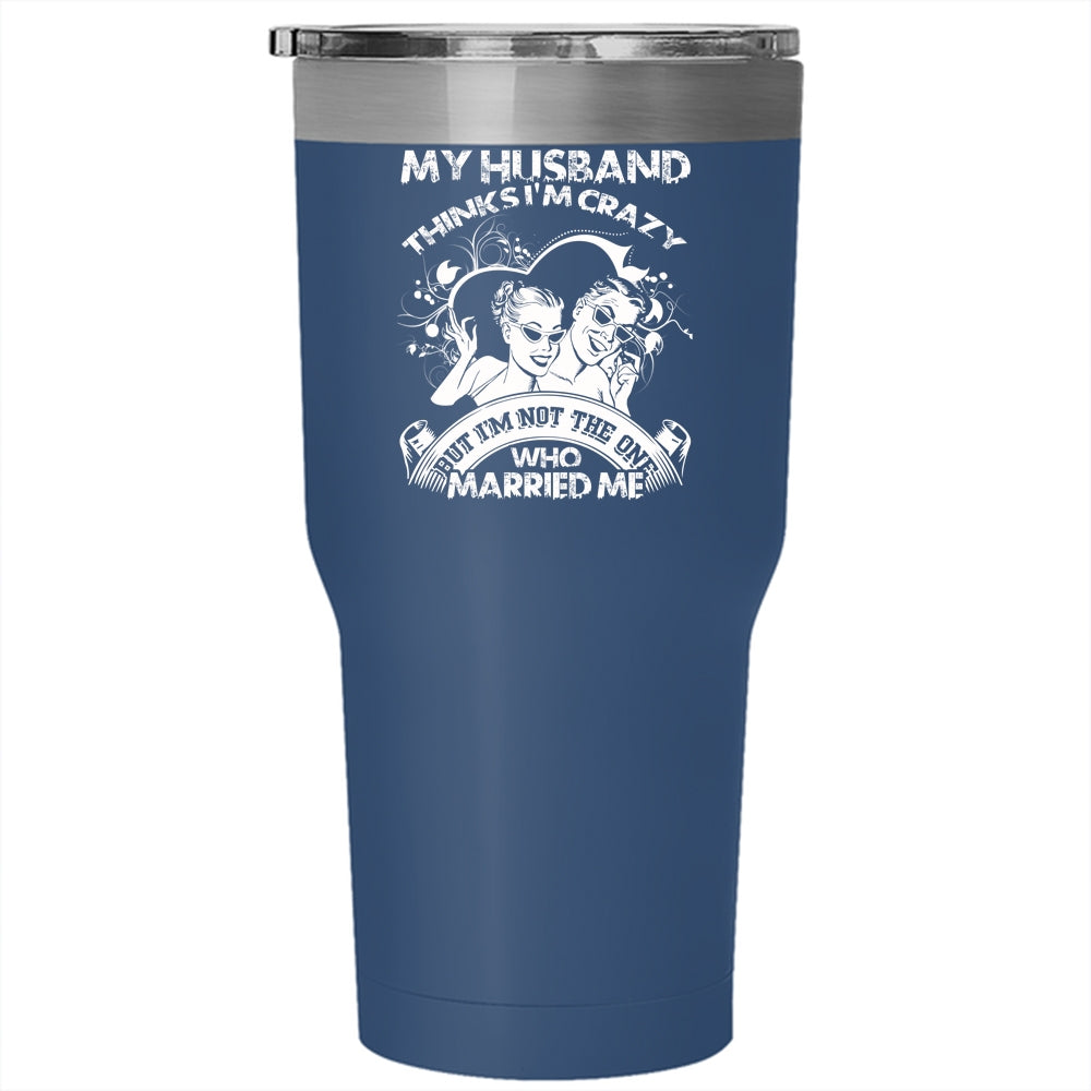 My Husband Thinks I'm Crazy Tumbler 30 oz Stainless Steel, Gift For Wedding Travel Mug
