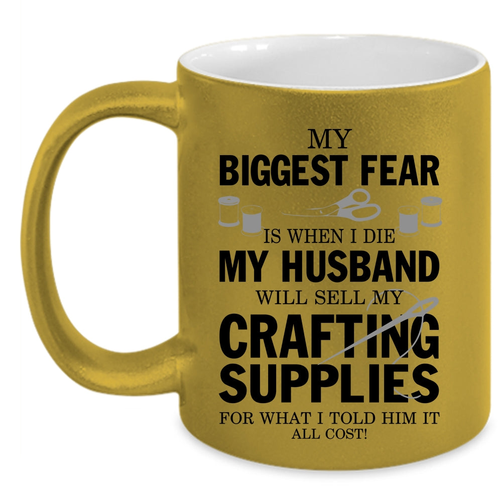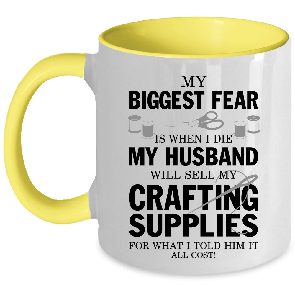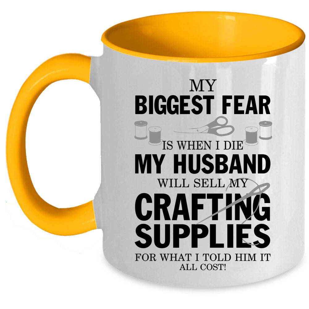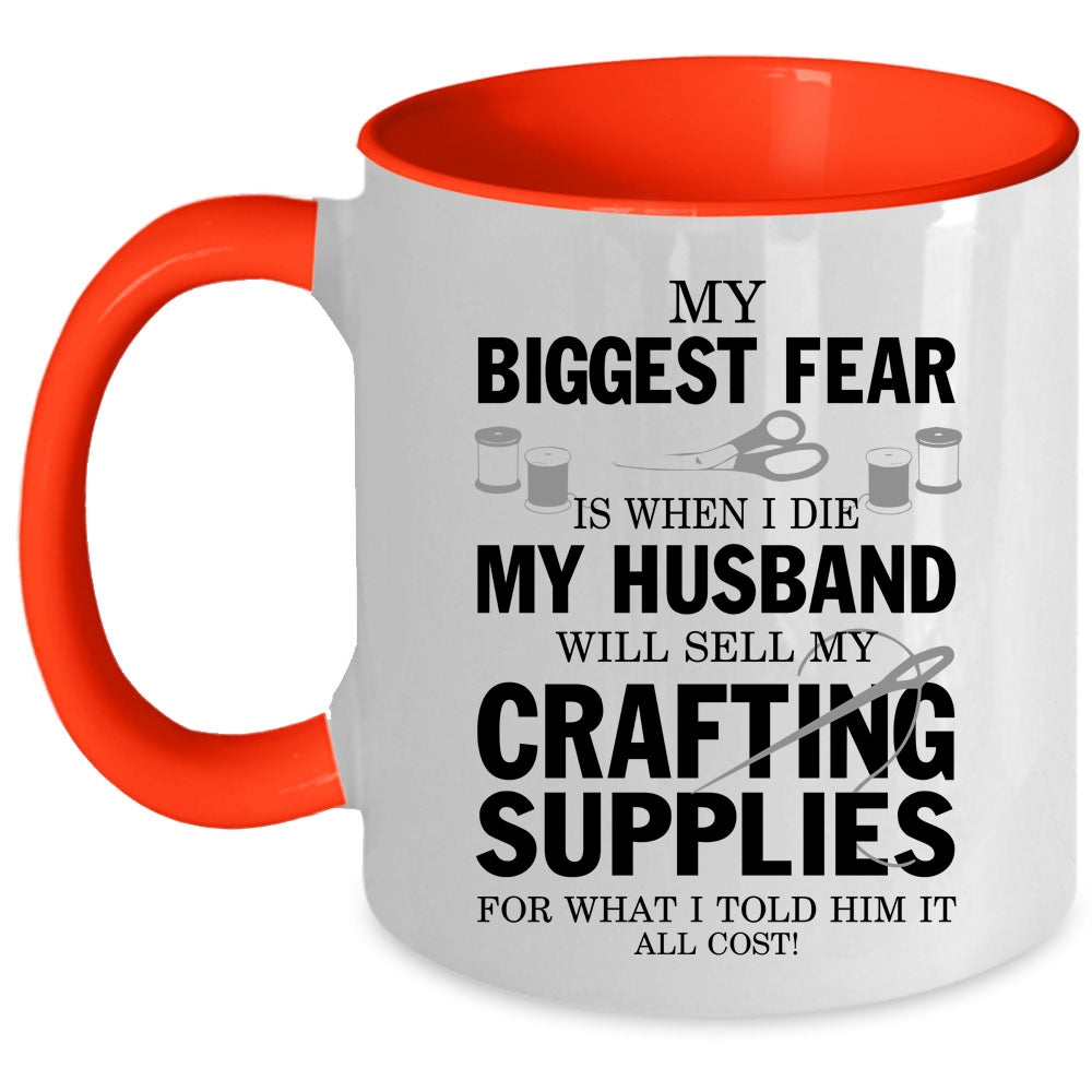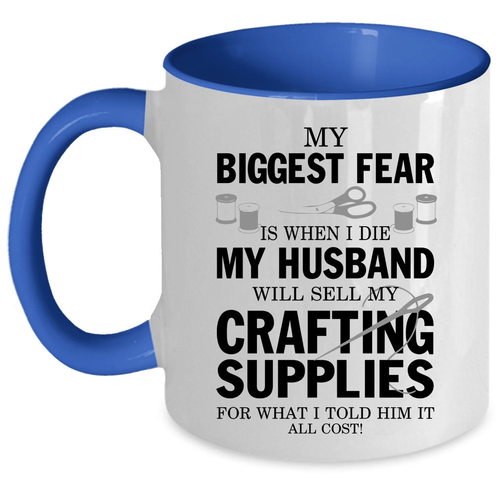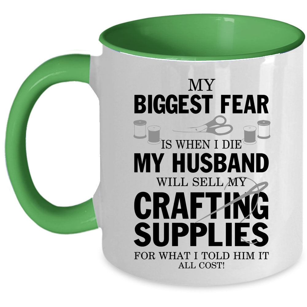My Husband Will Sell My Crafting Supplies Coffee Mug, My Biggest Fear Accent Mug