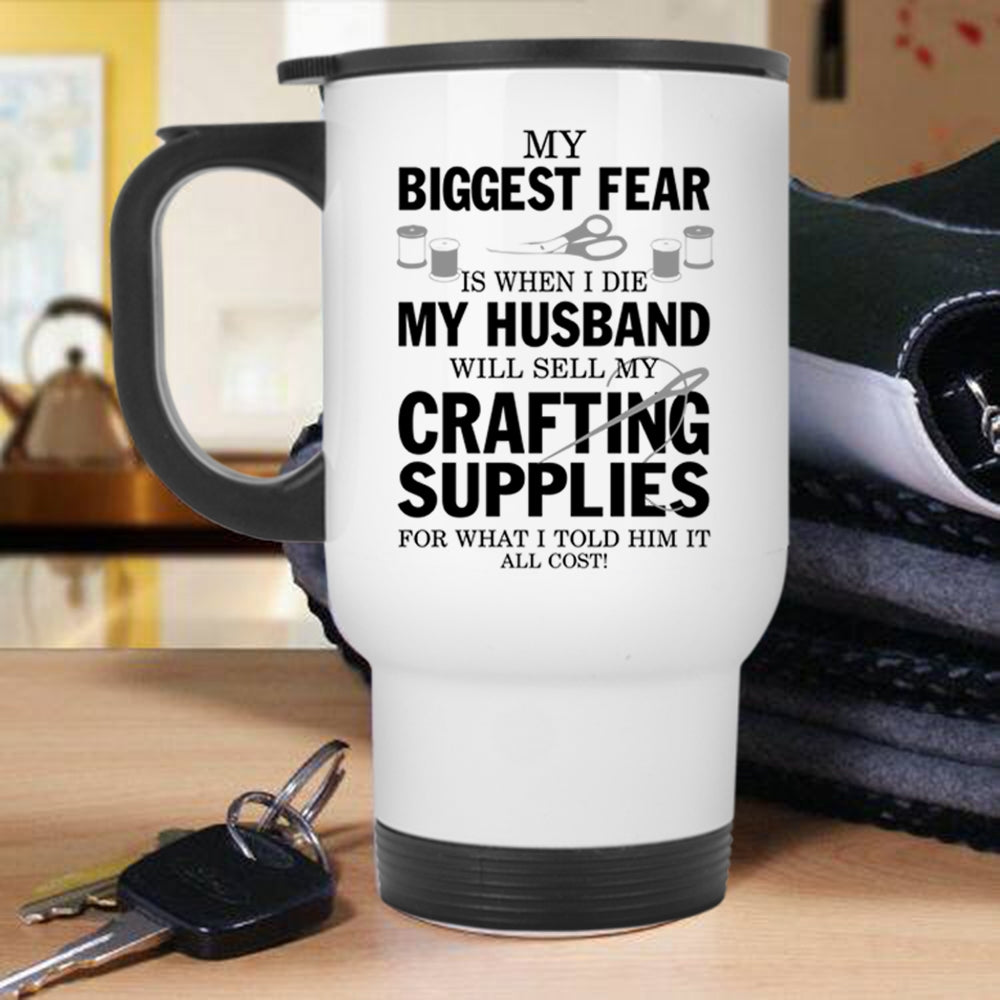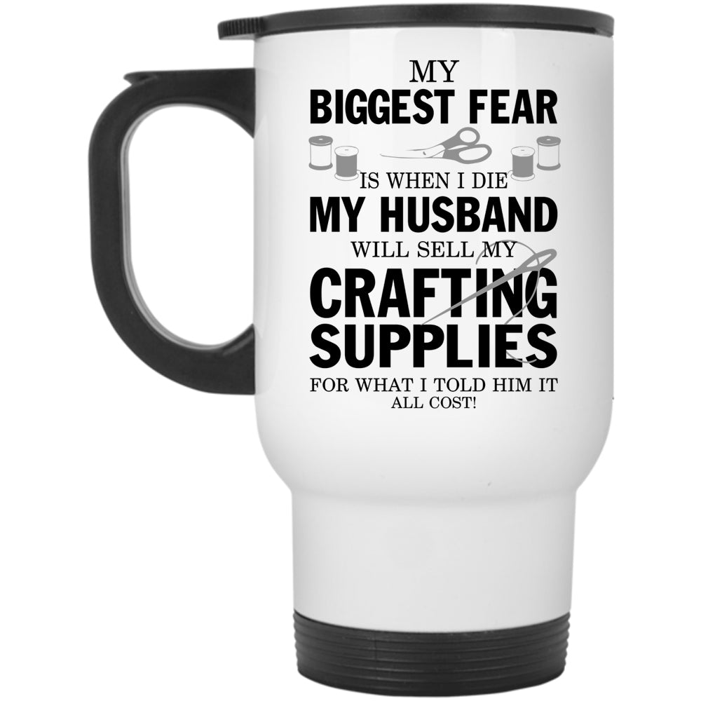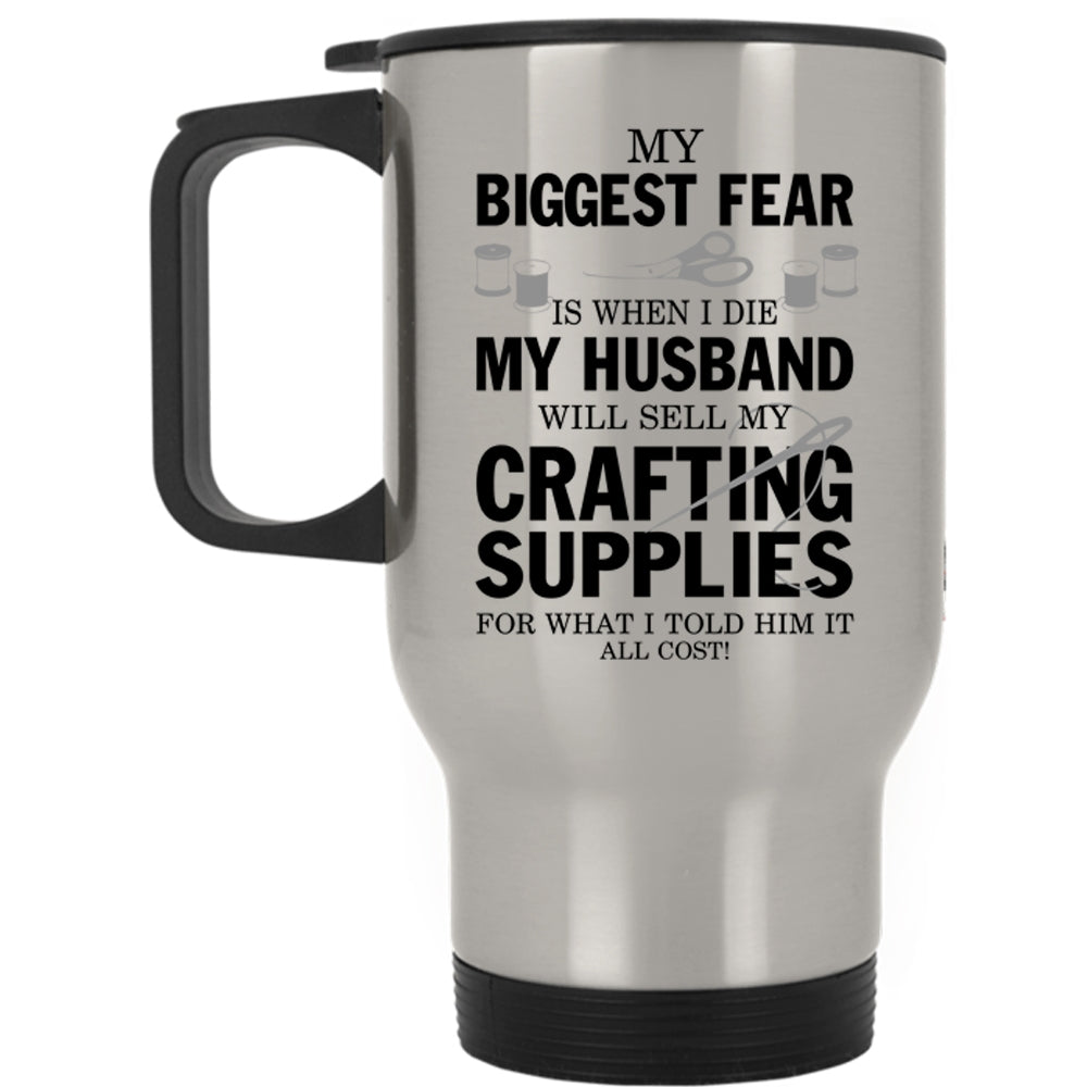 My Husband Will Sell My Crafting Supplies Travel Mug, My Biggest Fear Mug