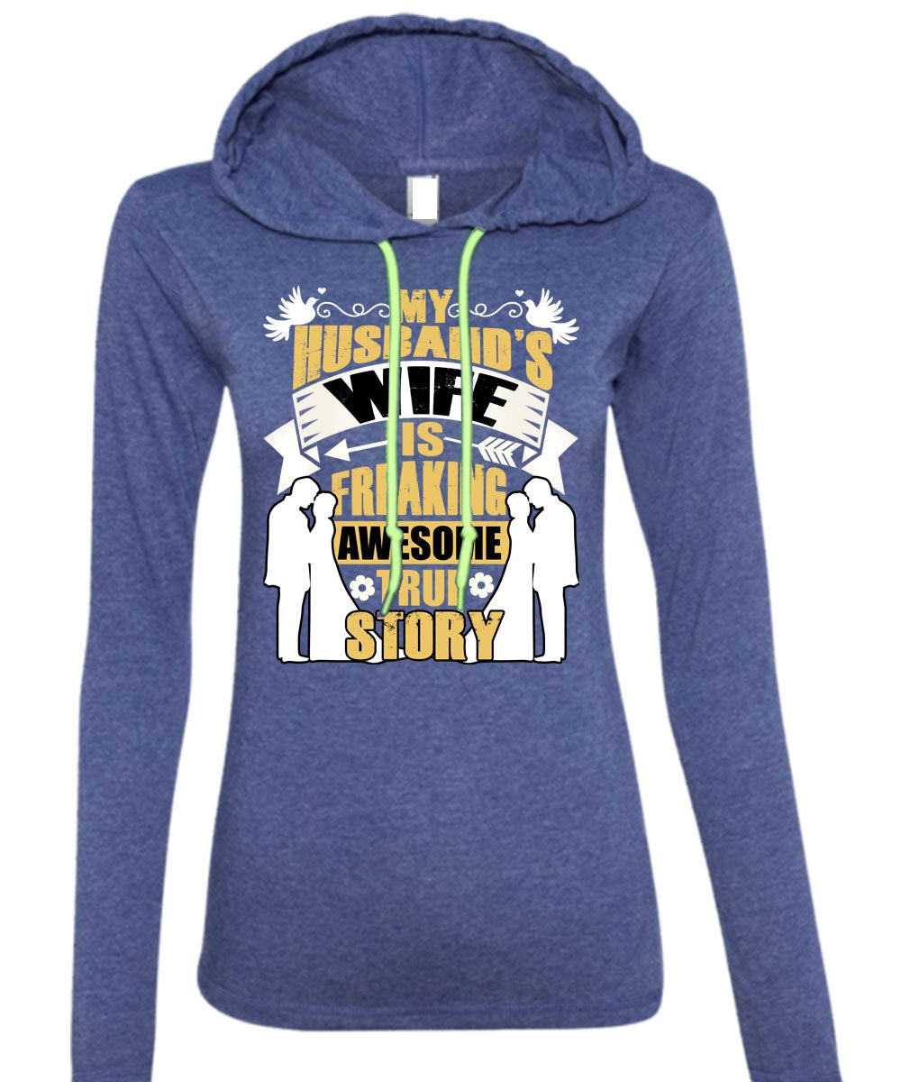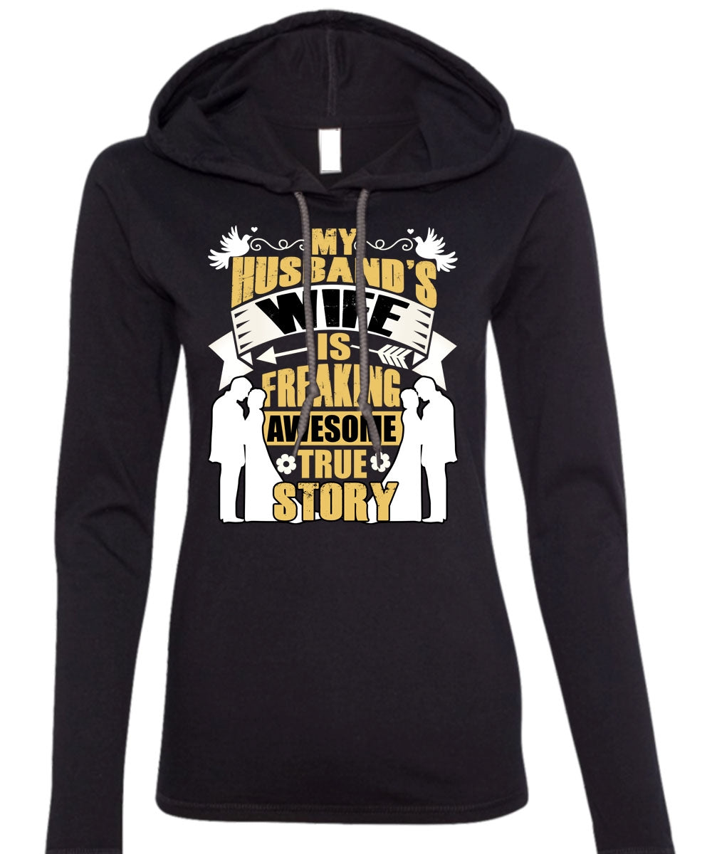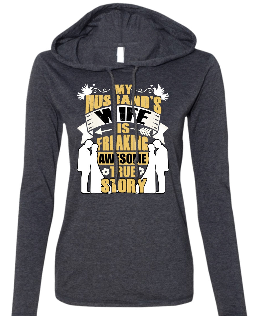 My Husband's Wife Is Freaking Awesome True Story T Shirt, Being A Husband T Shirt (Anvil Ladies Ringspun Hooded)
