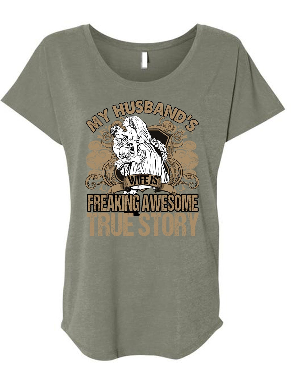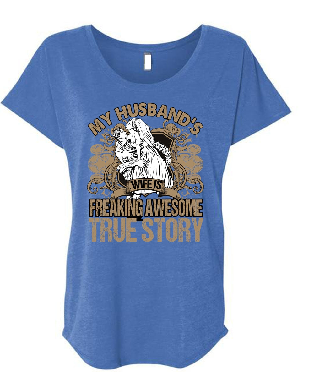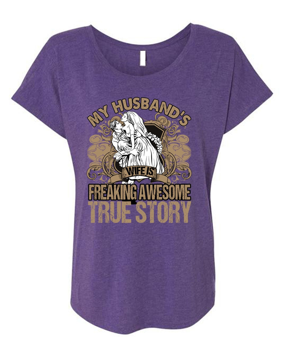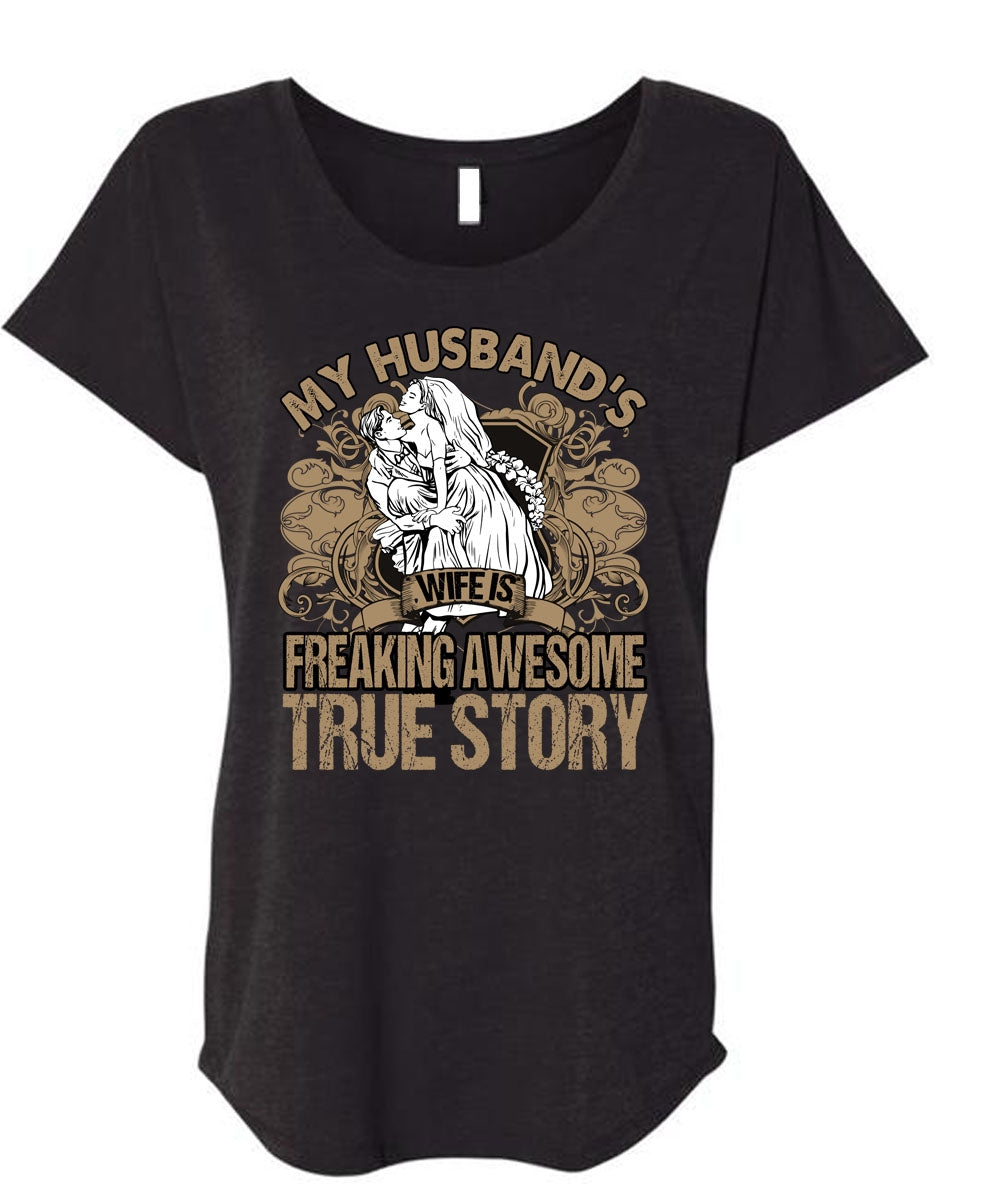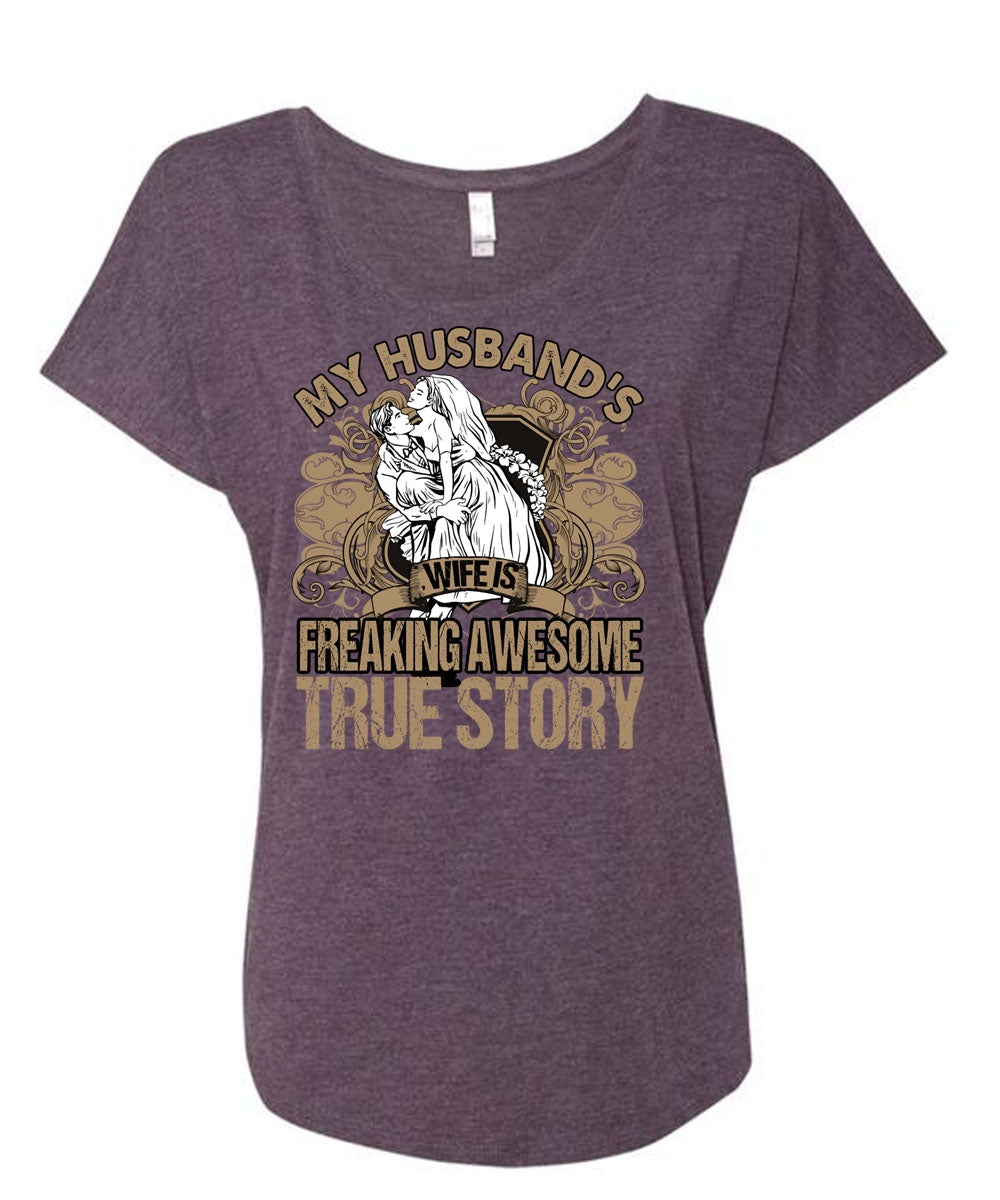 My Husband's Wife T Shirt, Freaking Awesome True Story T Shirt, Cool Shirt (Ladies' Triblend Dolman Sleeve)