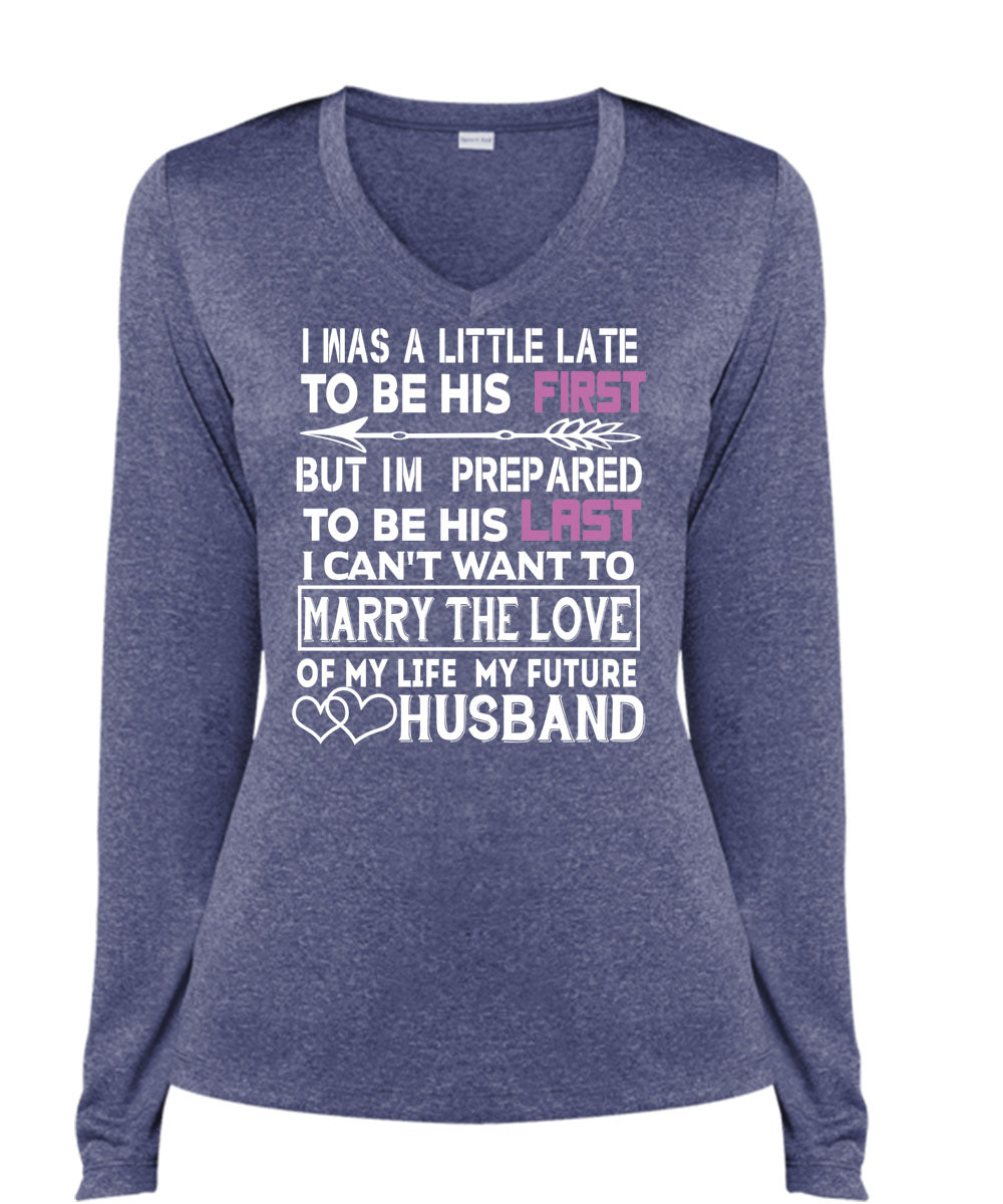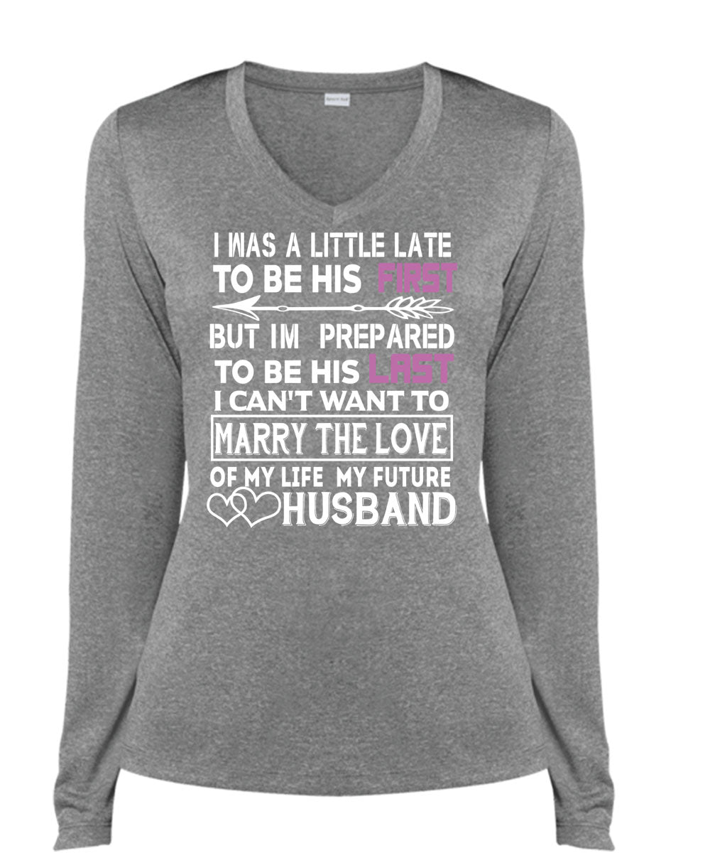 My Life My Future Husband T Shirt, I'm Prepared To Be His Last T Shirt, Cool Shirt (Ladies LS Heather V-Neck)