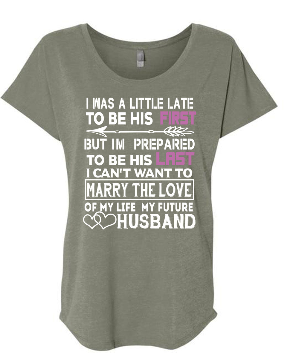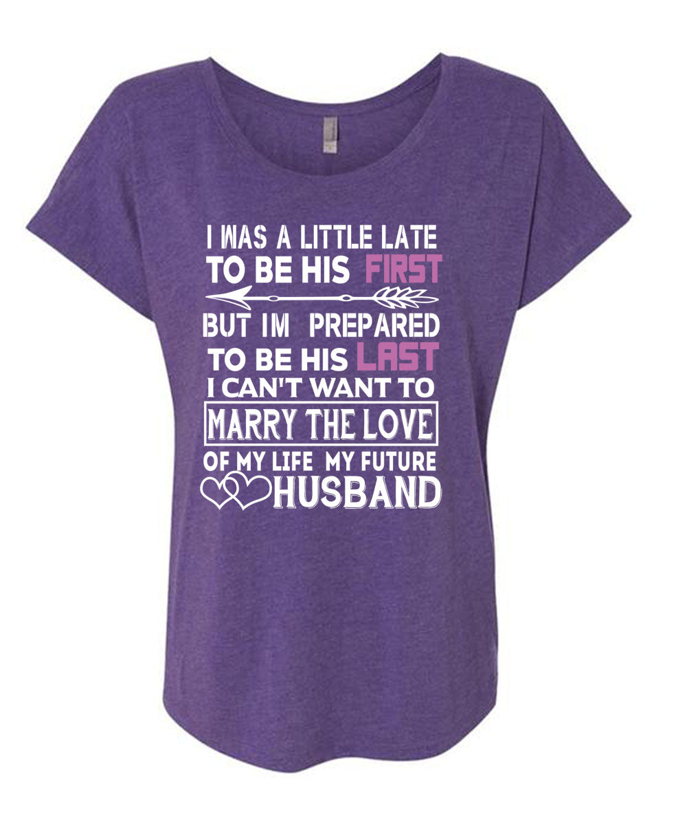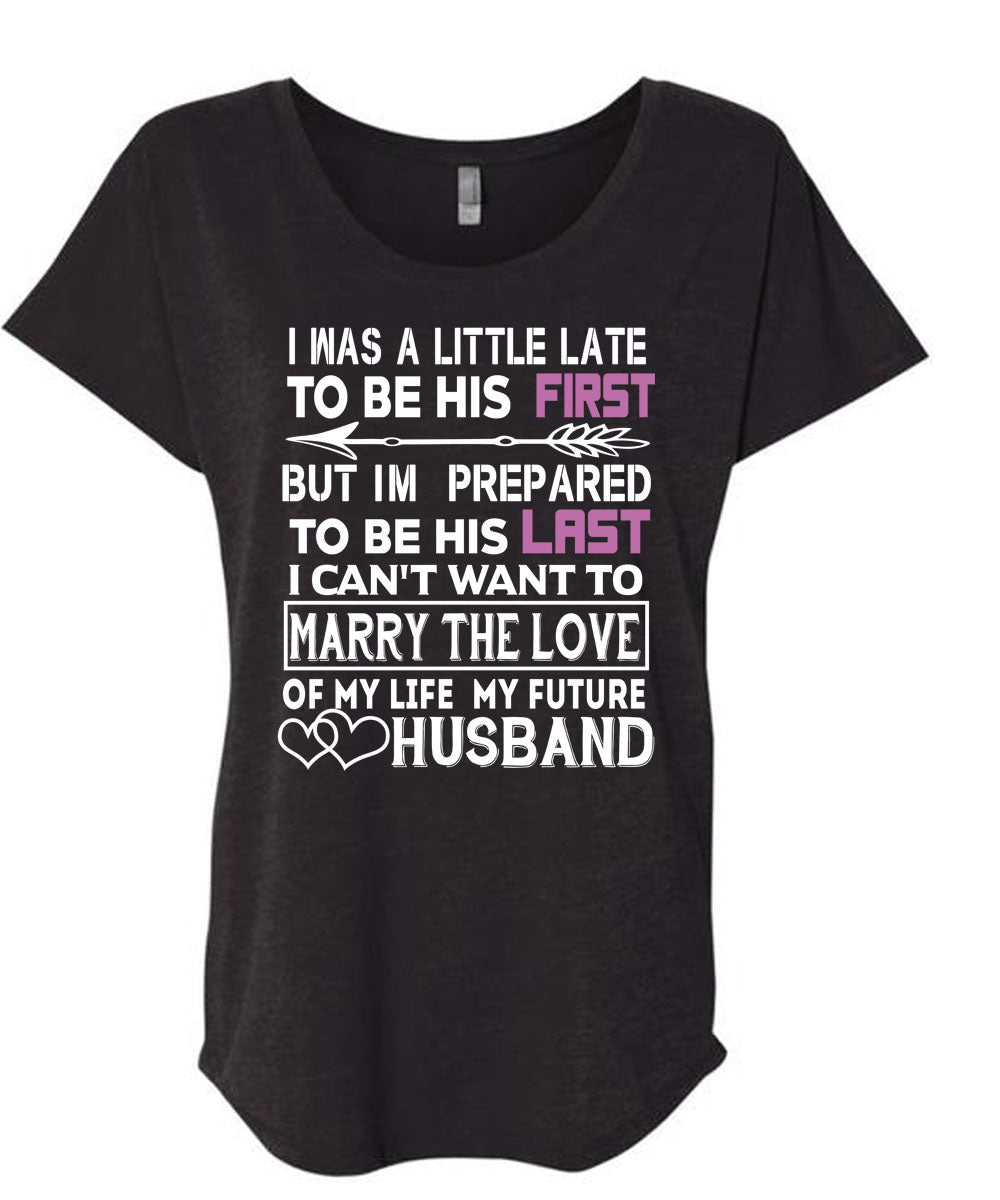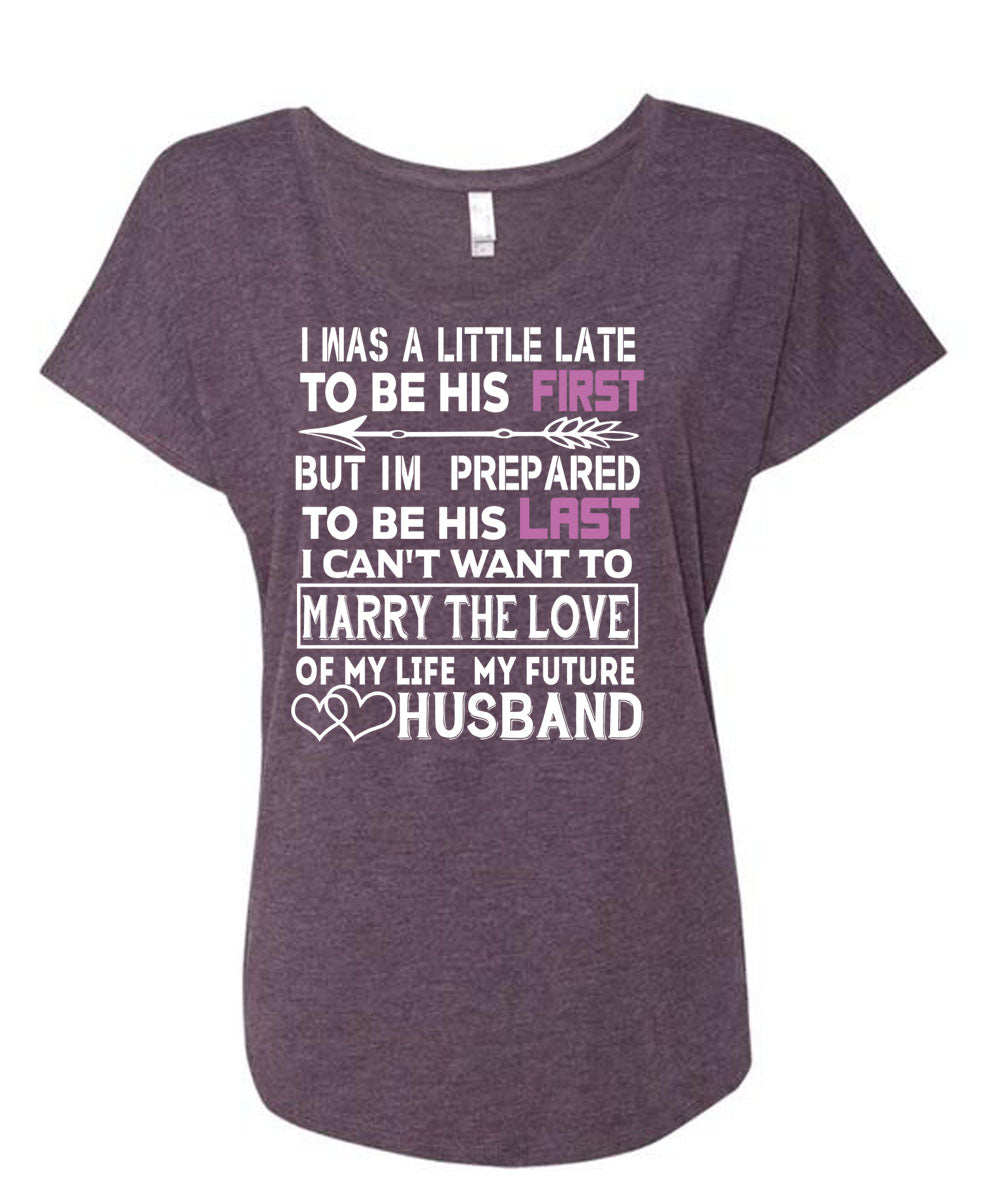 My Life My Future Husband T Shirt, I'm Prepared To Be His Last T Shirt, Cool Shirt (Ladies' Triblend Dolman Sleeve)