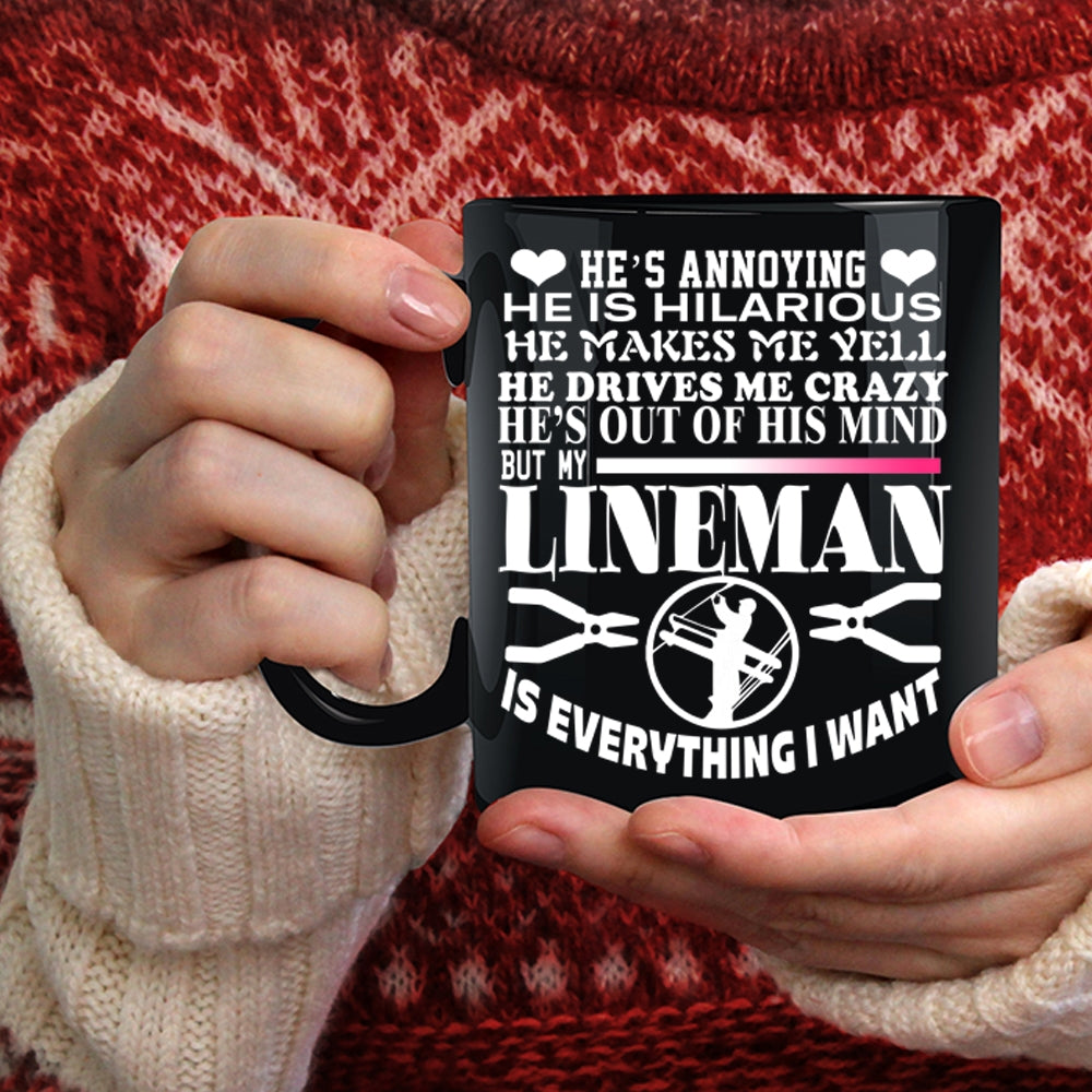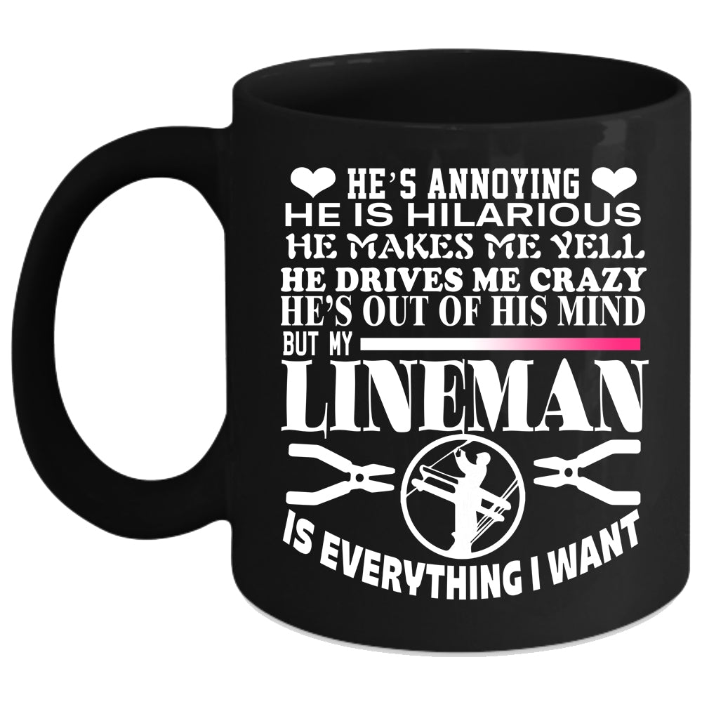 My Lineman Is Everything I Want Coffee Mug, Gift For My Wife Coffee Cup