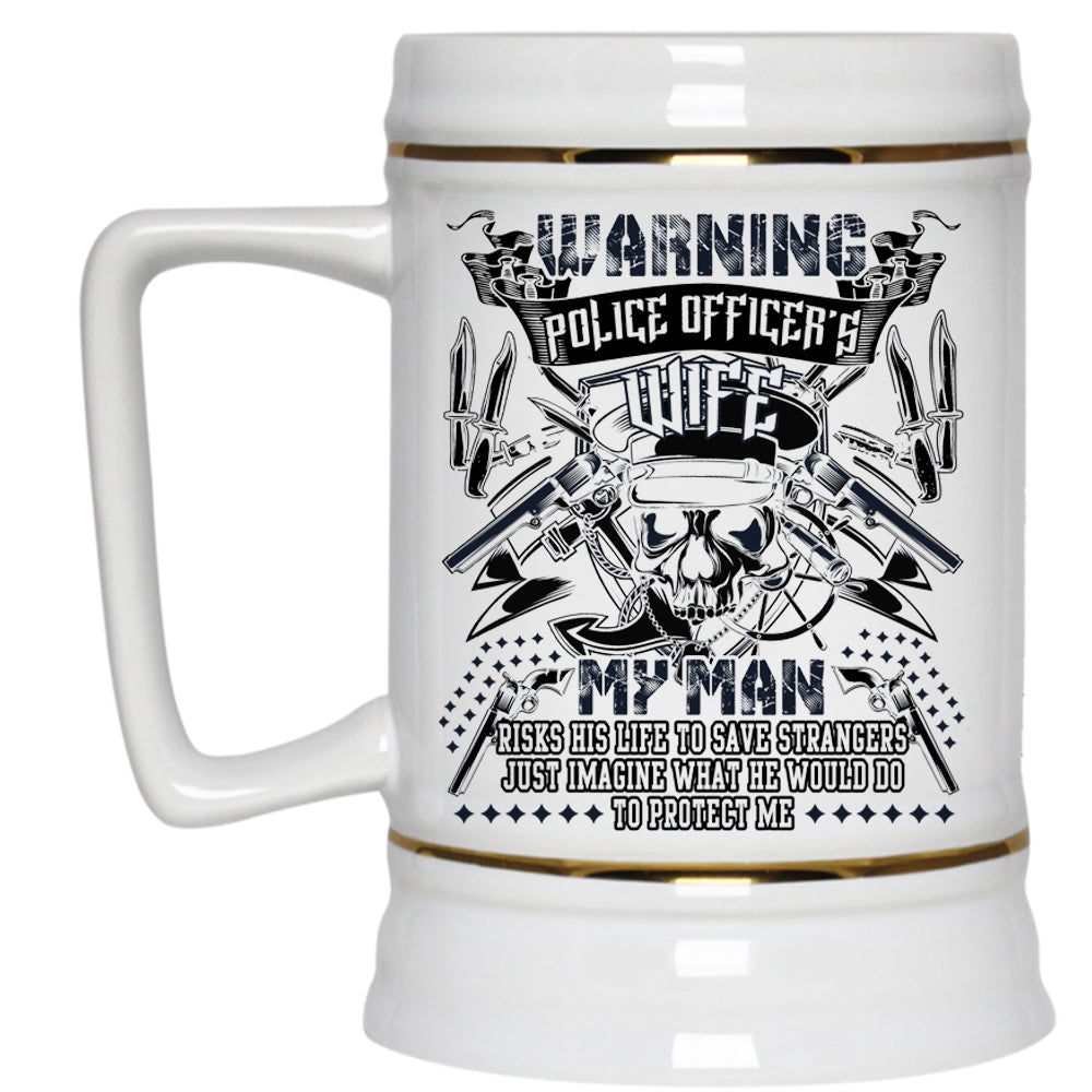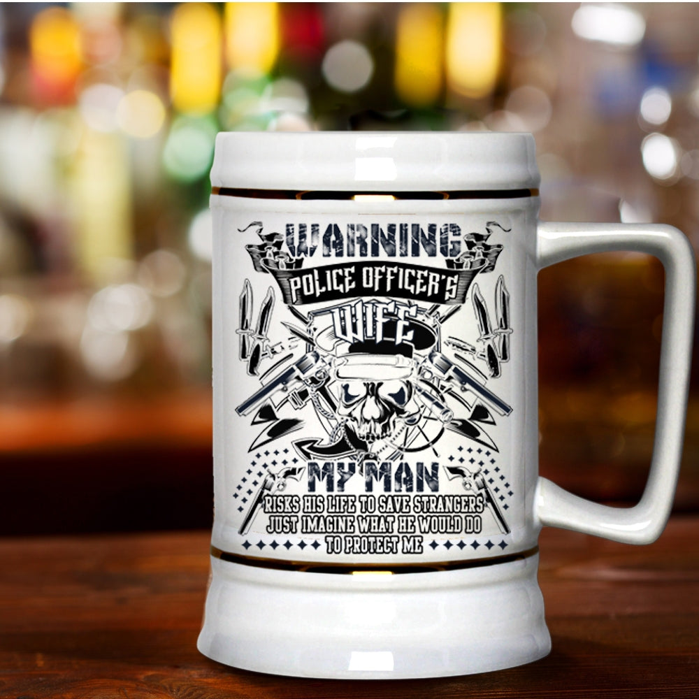 My Man Protect Me Beer Stein 22oz, Police Officer's Wife Beer Mug