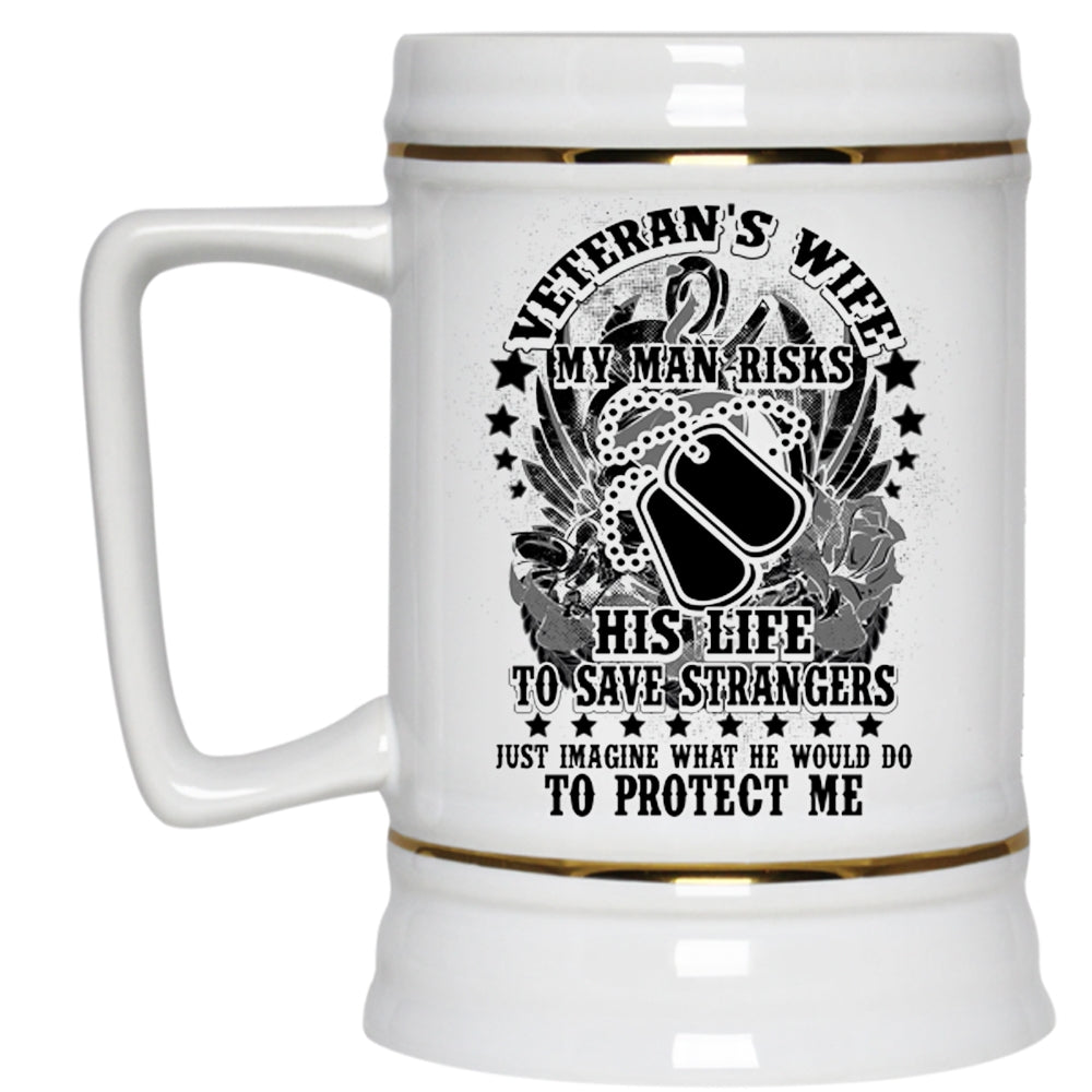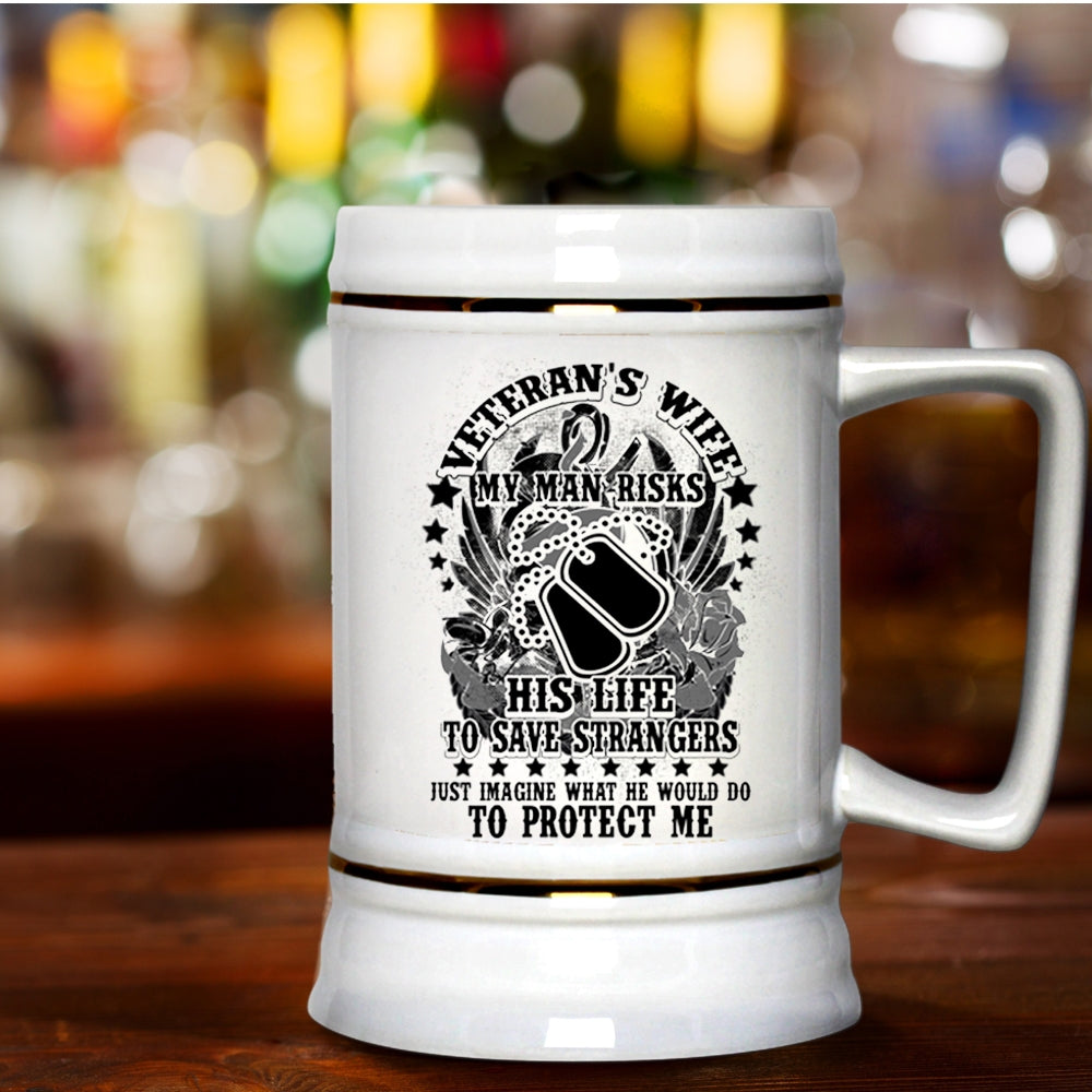 My Man Protect Me Beer Stein 22oz, Veteran's Wife Beer Mug
