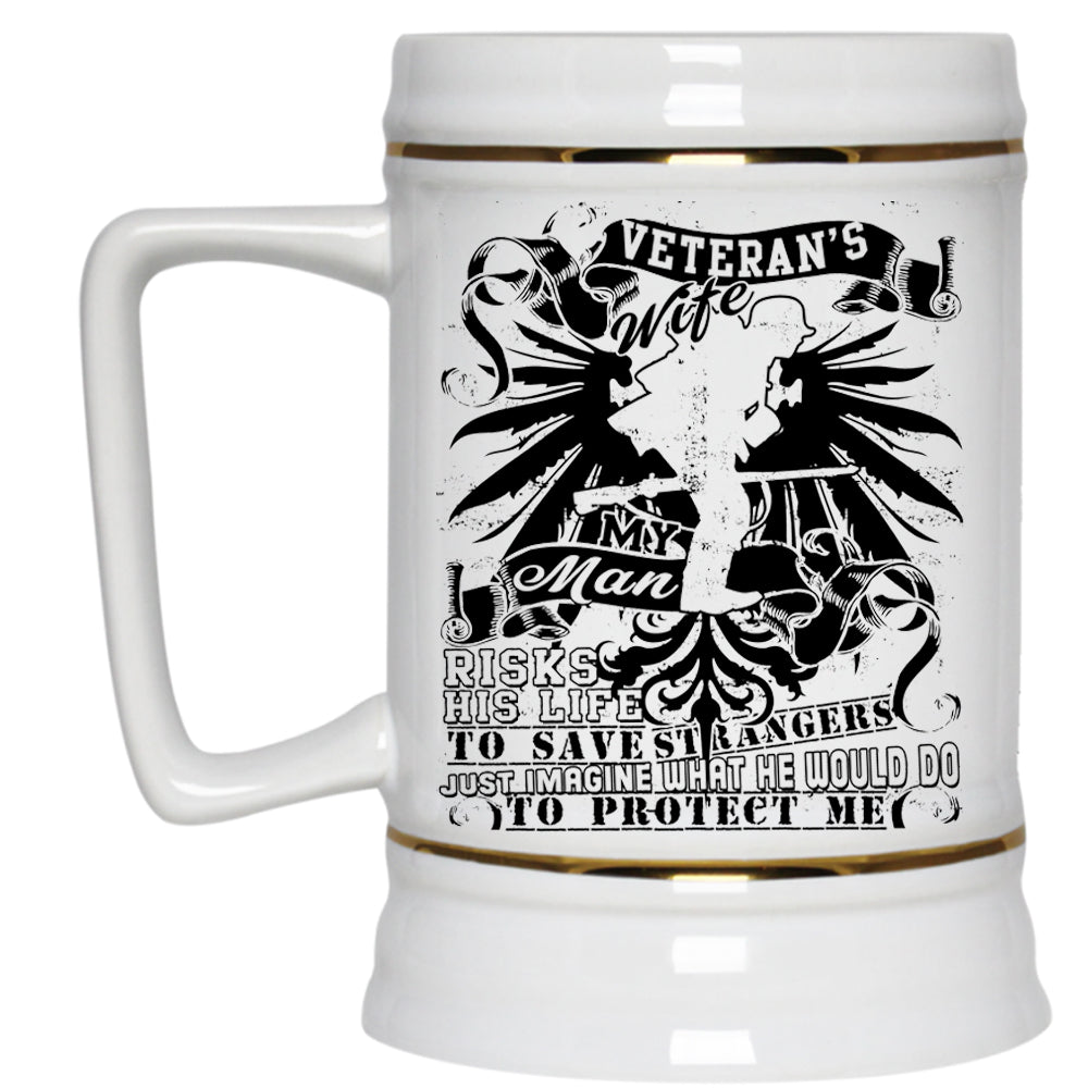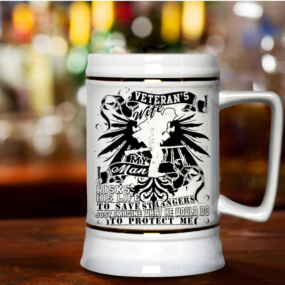 My man Would Do To Protect Me Beer Stein 22oz, Veteran's Wife Beer Mug