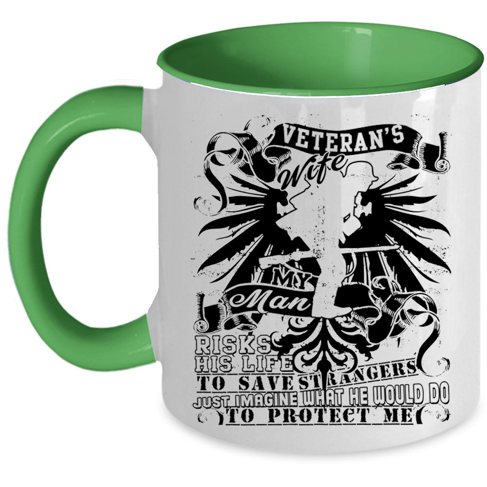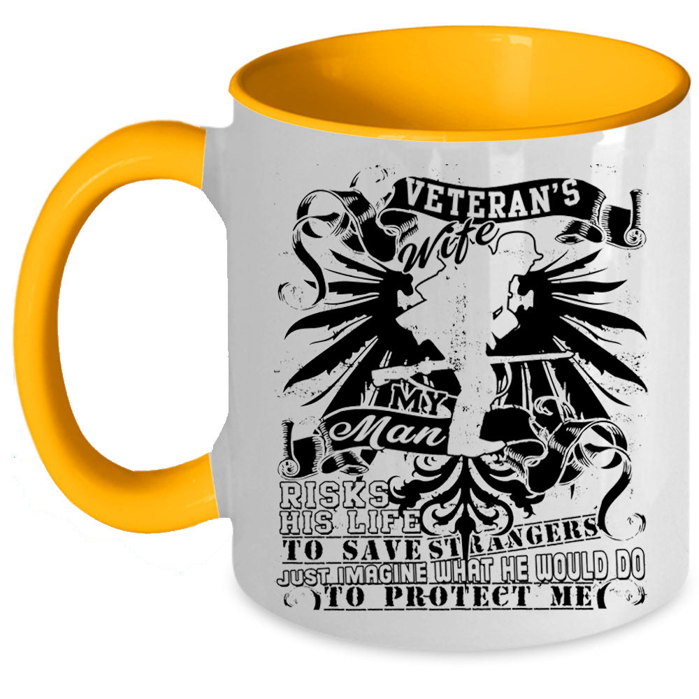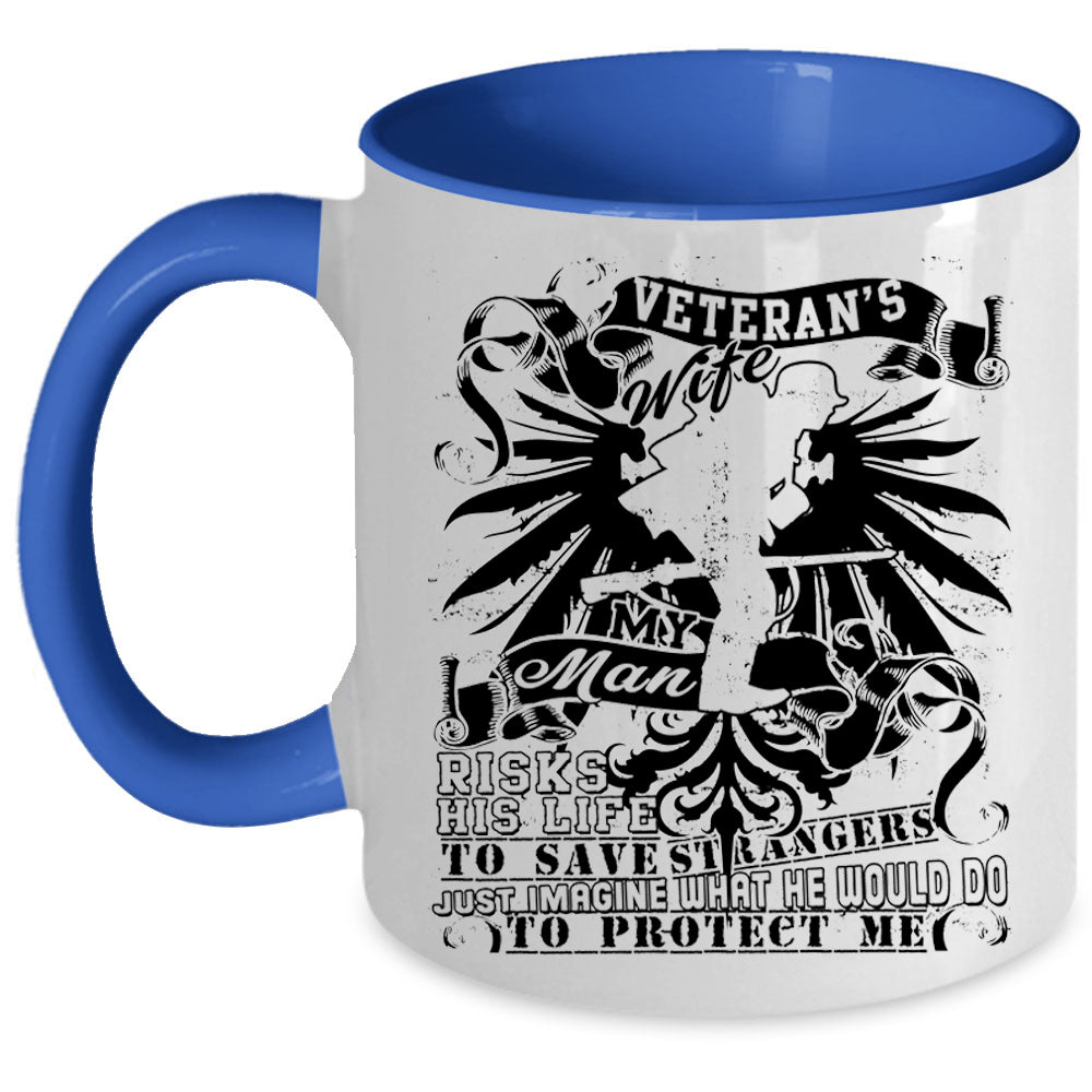My man Would Do To Protect Me Coffee Mug, Veteran's Wife Accent Mug