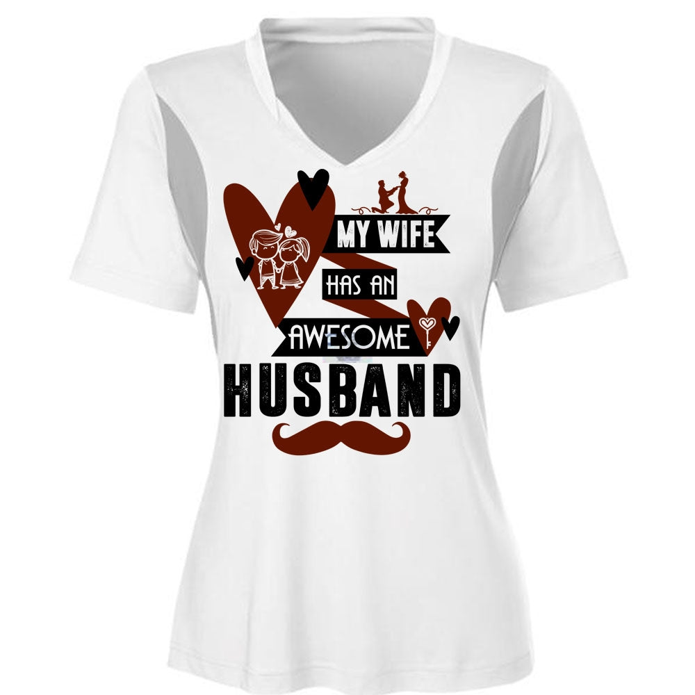 My Wife Has An Awesome Husband T Shirt, Being A Husband T Shirt, Cool Shirt (Ladies LS Heather V-Neck)