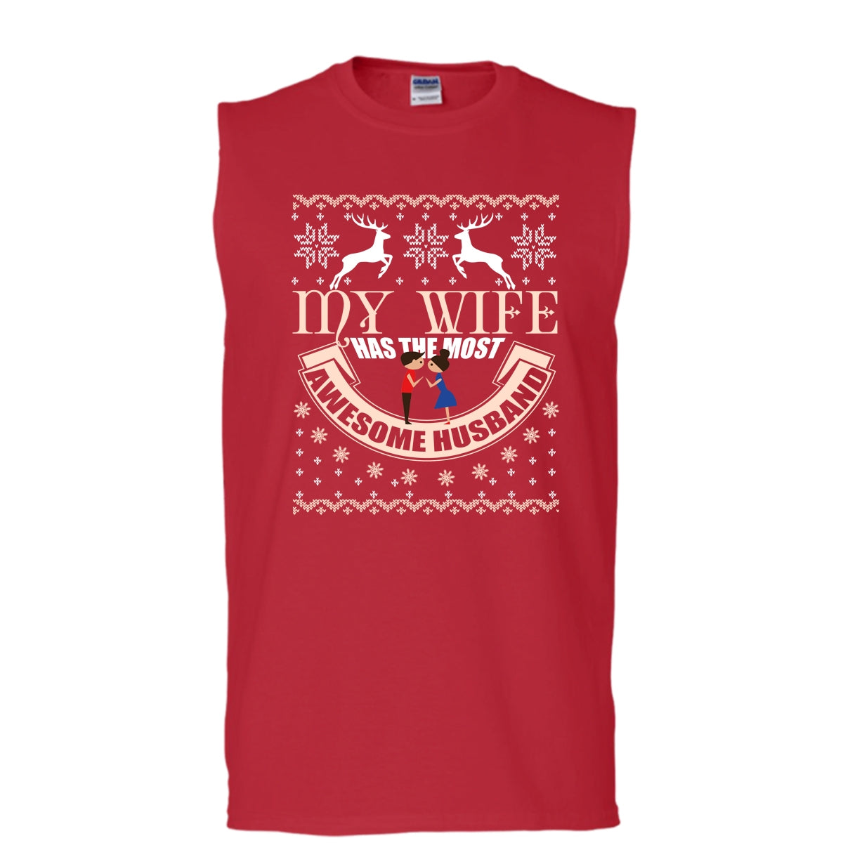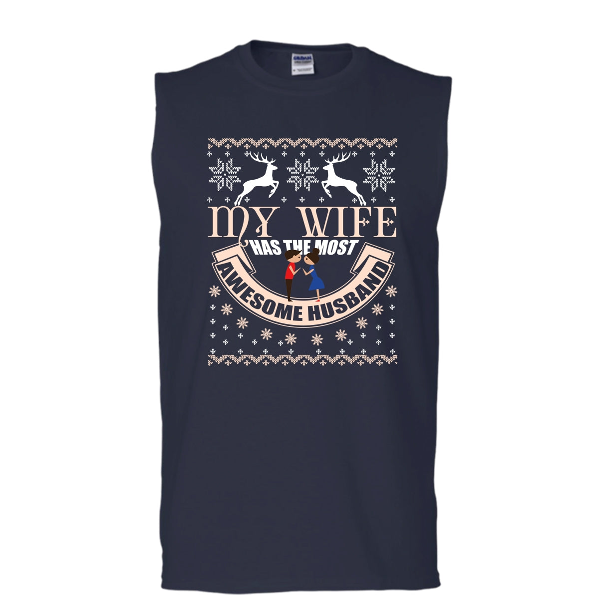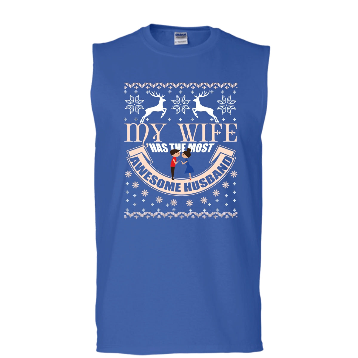 My Wife Has The Most Awesome Husband T Shirt, Coolest Wife T Shirt, Cool T Shirt (Men's Cotton Sleeveless)