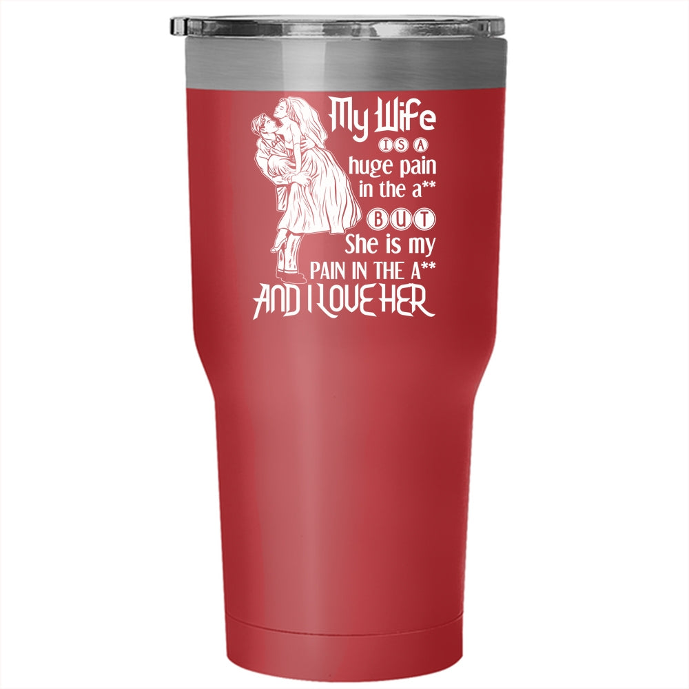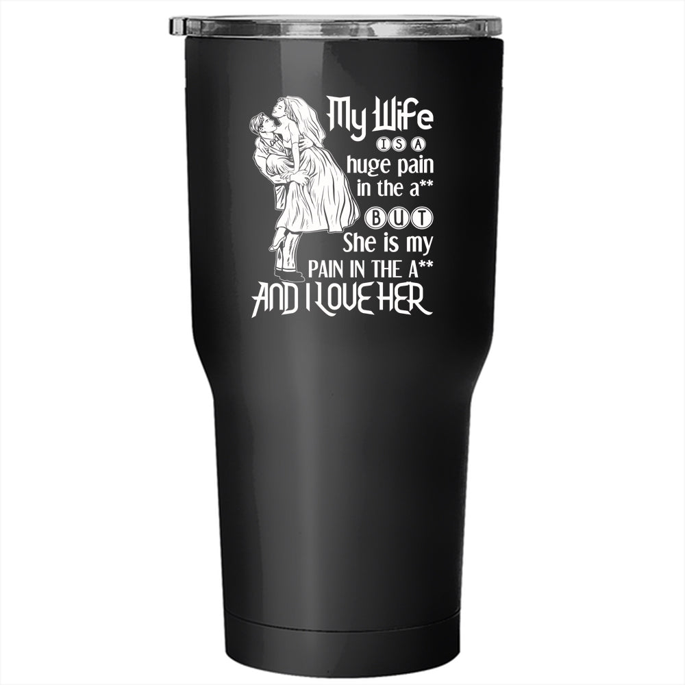 My Wife Is A Huge Pain And I Love Her Tumbler 30 oz Stainless Steel, Funny Gift For Wedding Travel Mug