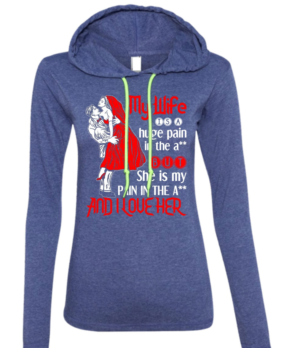My Wife Is A Huge Pain T Shirt, I Love Her T Shirt (Anvil Ladies Ringspun Hooded)
