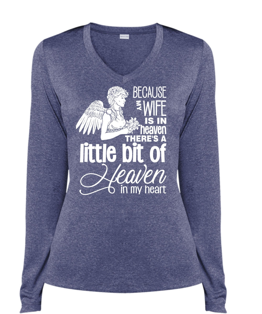 My Wife Is In Heaven T Shirt, I Love My Wife T Shirt, Cool Shirt (Ladies LS Heather V-Neck)