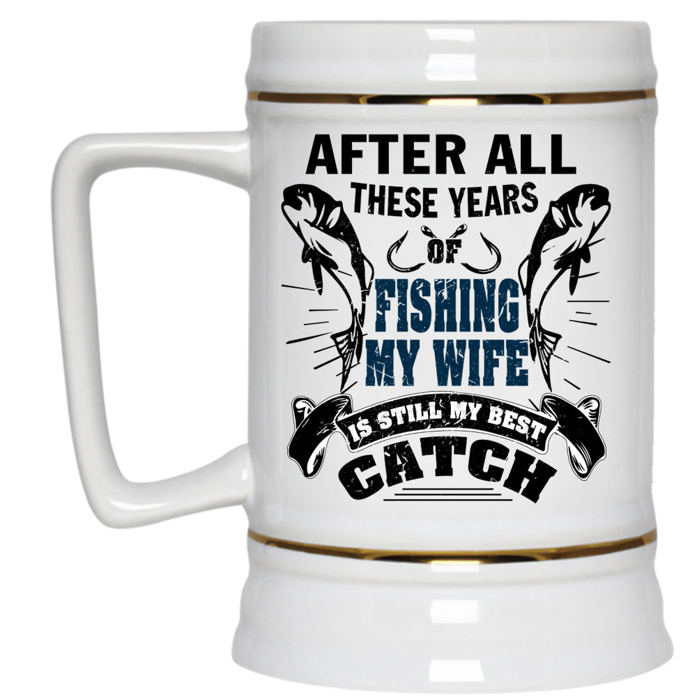 My Wife Is My Best Catch Beer Stein 22oz, After All These Years Of Fishing Beer Mug