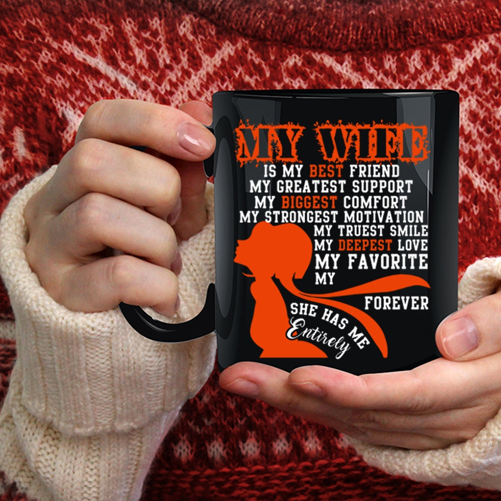 My Wife Is My Best Friend Coffee Mug, She Has Me Entirely Coffee Cup