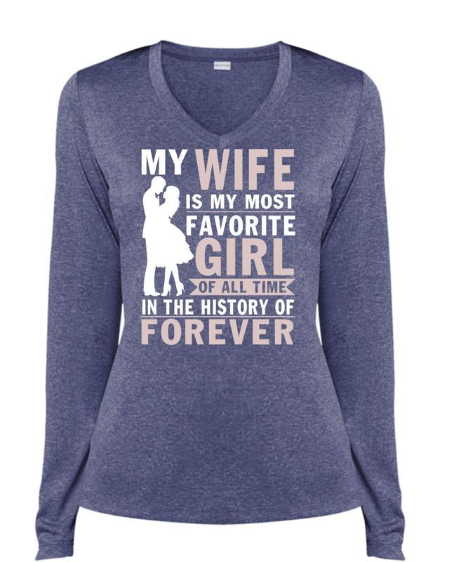 My Wife Is My Most Favorite Girl T Shirt, I Love My Wife T Shirt, Cool Shirt (Ladies LS Heather V-Neck)
