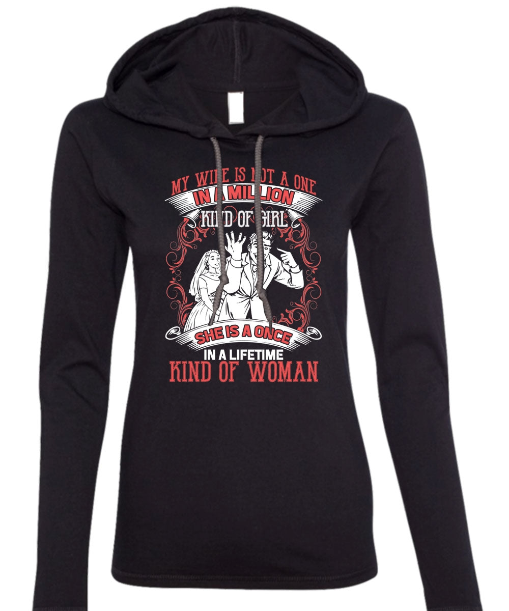 My Wife Is Not A One In A Million T Shirt, Kind Of Woman T Shirt (Anvil Ladies Ringspun Hooded)