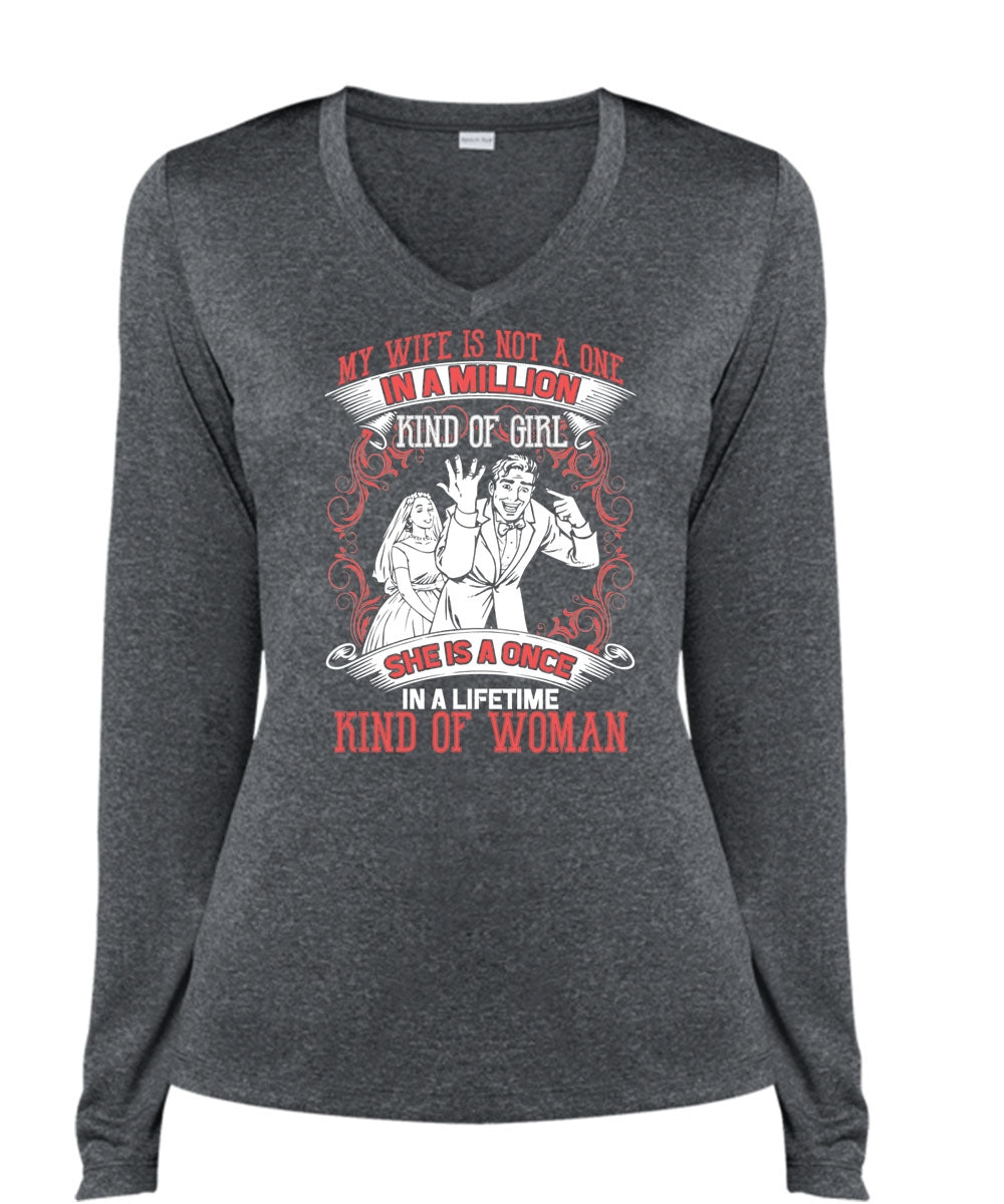 My Wife Is Not A One In A Million T Shirt, Kind Of Woman T Shirt, Cool Shirt (Ladies LS Heather V-Neck)