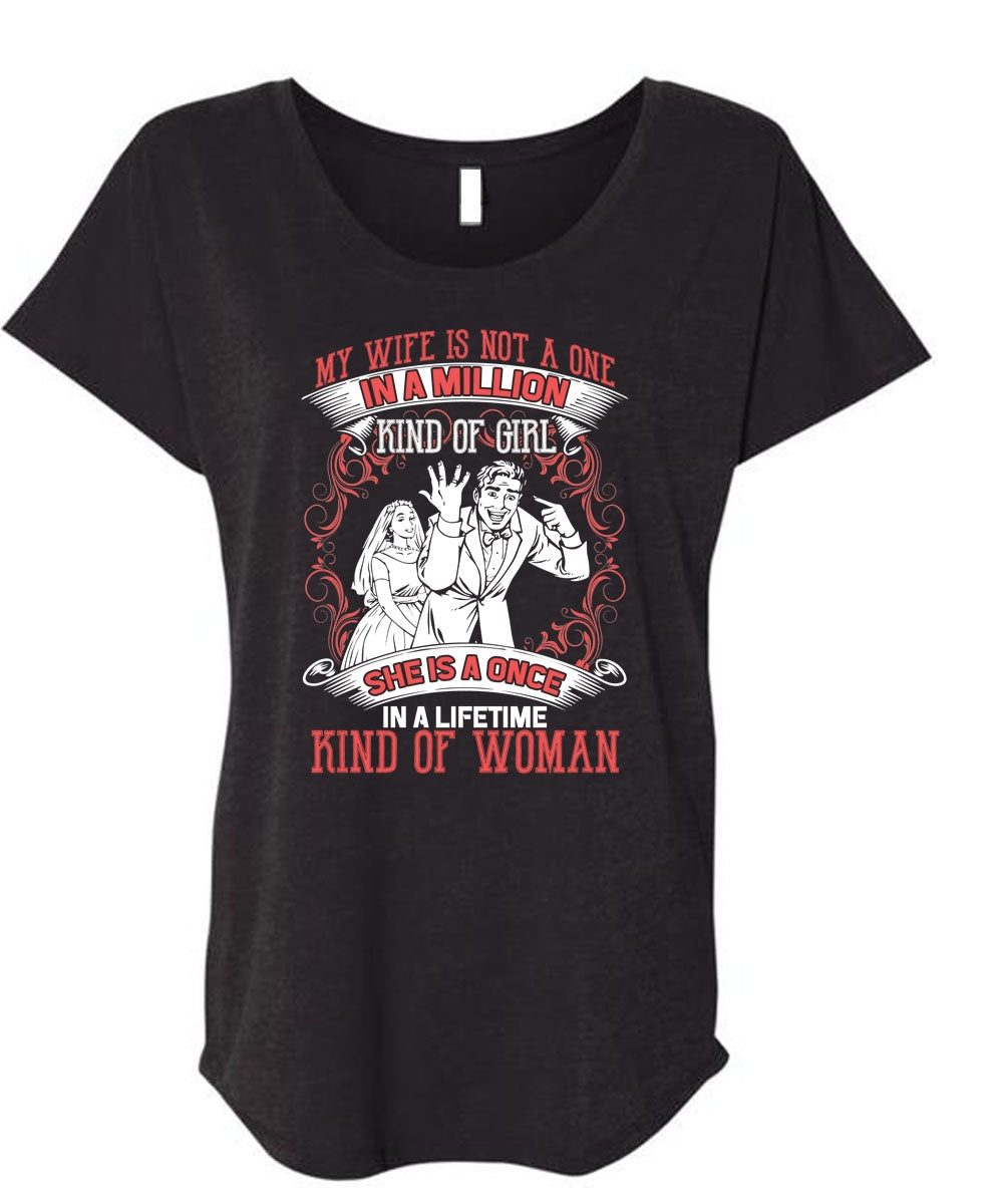 My Wife Is Not A One In A Million T Shirt, Kind Of Woman T Shirt, Cool Shirt (Ladies' Triblend Dolman Sleeve)