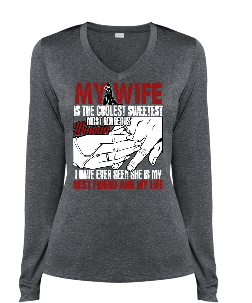My Wife Is The Coolest T Shirt, Best Friend And My Life T Shirt, Cool Shirt (Ladies LS Heather V-Neck)