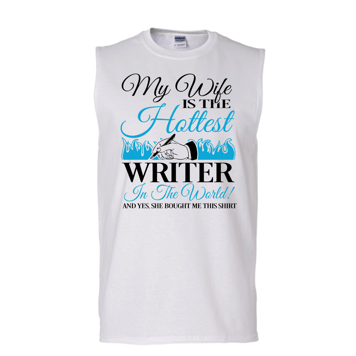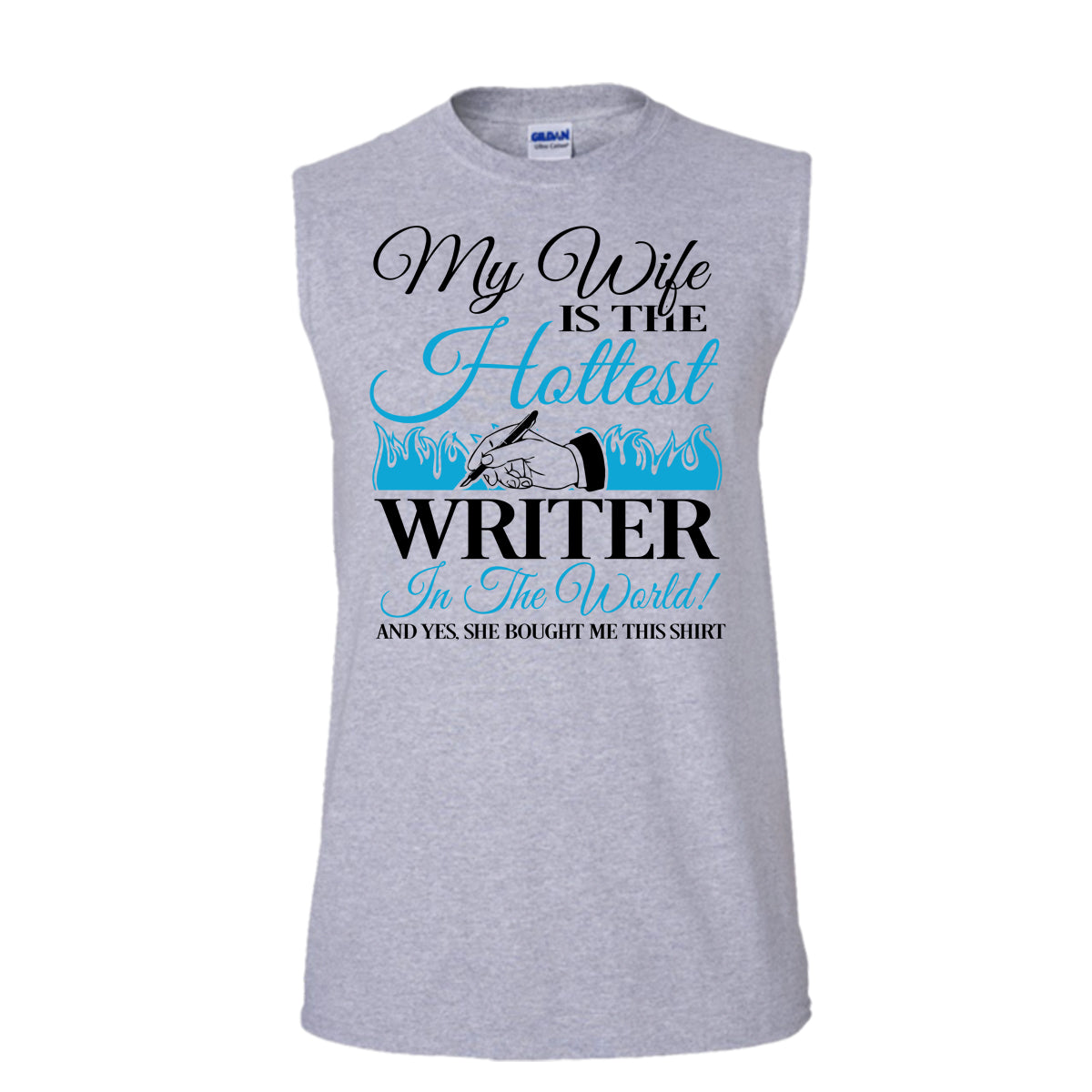 My Wife Is The Hottest Writer In The World T Shirt, Cool Writer Wife T Shirt, Awesome t-shirts (Men's Cotton Sleeveless)