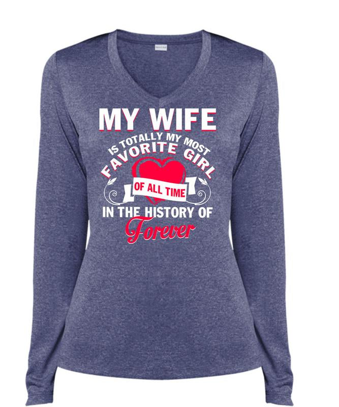 My Wife Is Totally My Most Favorite Girl T Shirt, The History Of Forever T Shirt, Cool Shirt (Ladies LS Heather V-Neck)