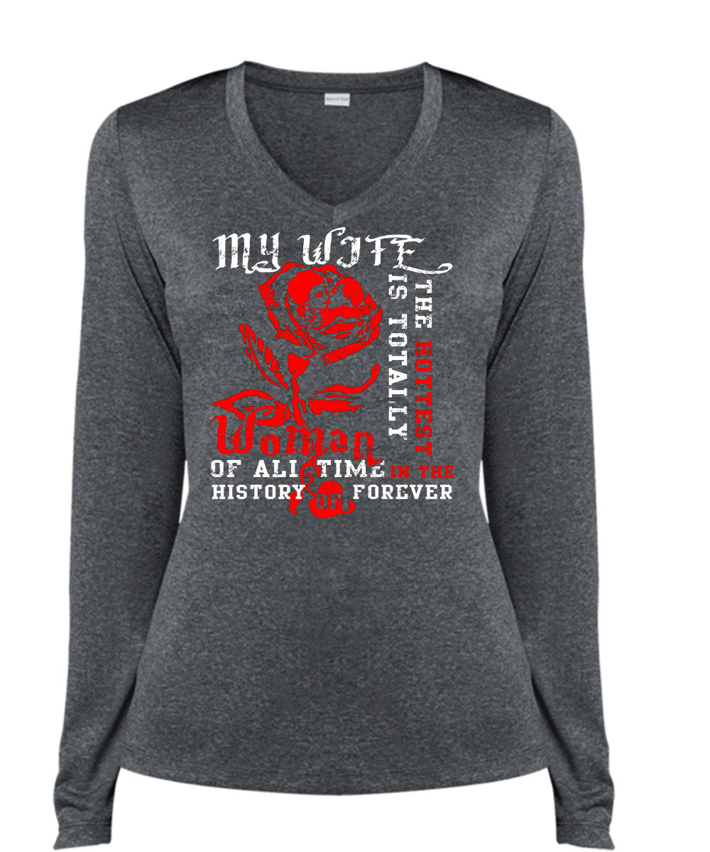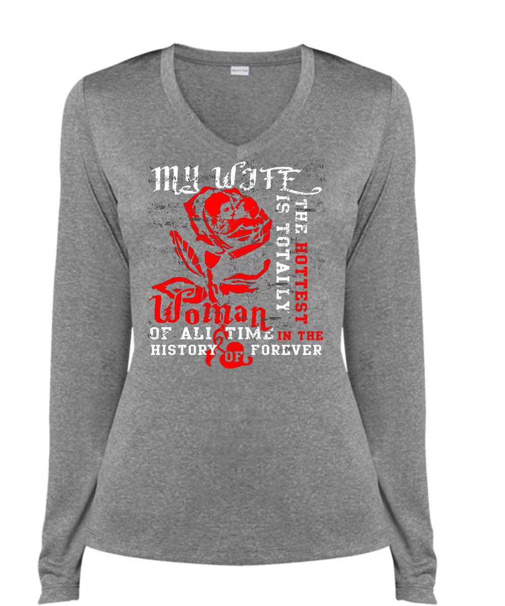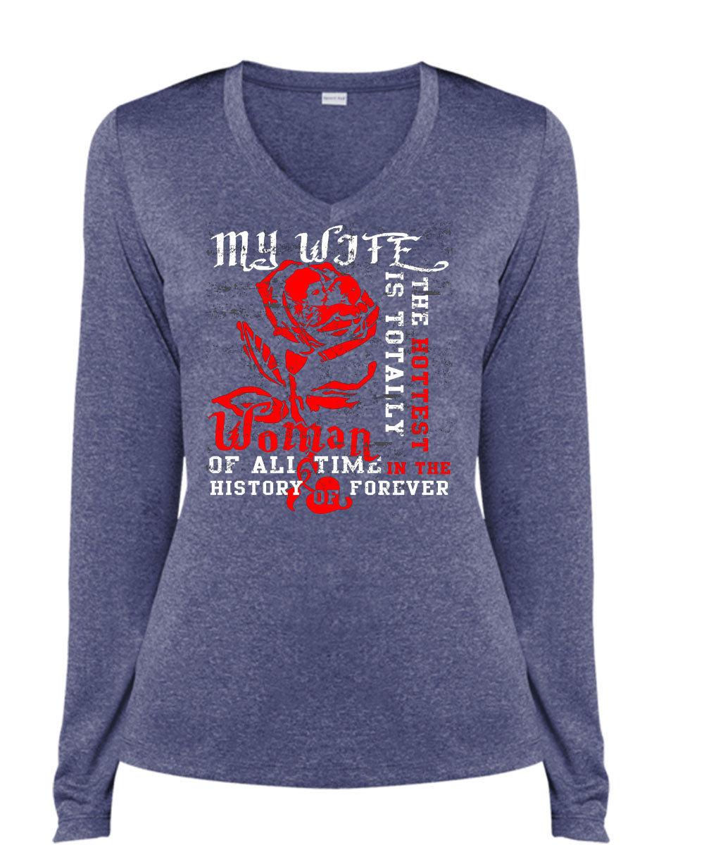 My Wife Is Totally The Hottest Woman T Shirt, Being A Husband T Shirt, Cool Shirt (Ladies LS Heather V-Neck)