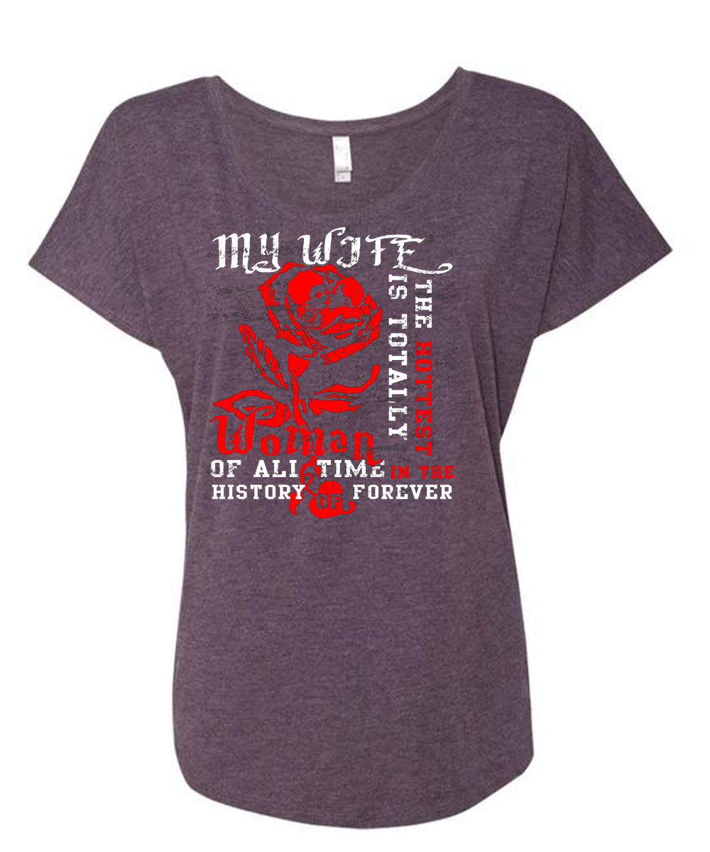 My Wife Is Totally The Hottest Woman T Shirt, Being A Husband T Shirt, Cool Shirt (Ladies' Triblend Dolman Sleeve)