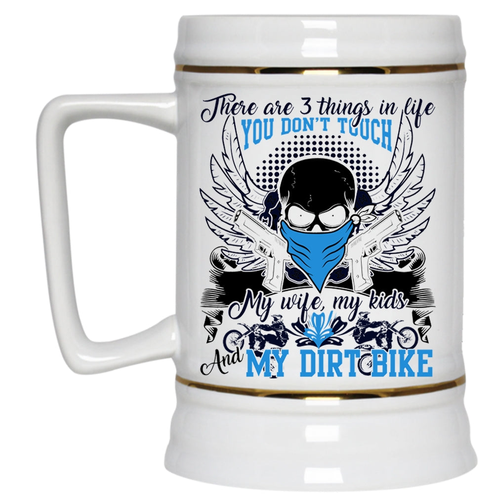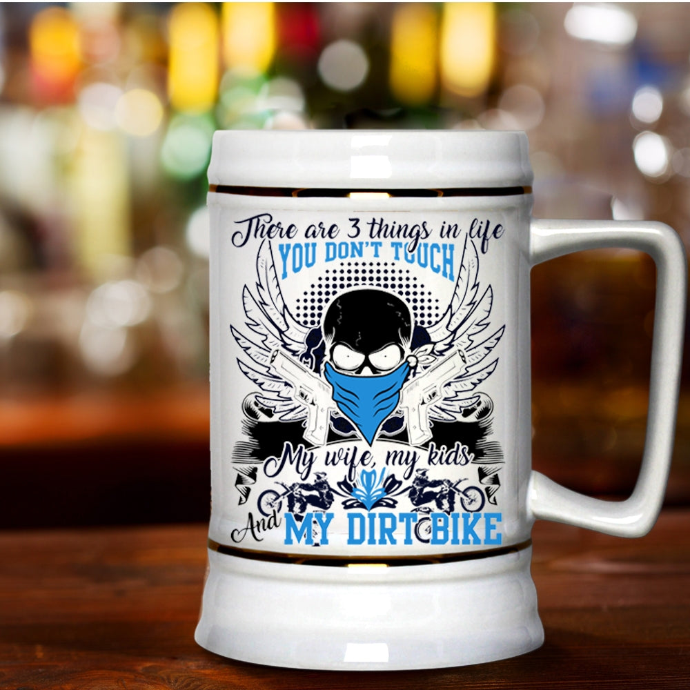 My Wife My Kids And My Dirt Bike Beer Stein 22oz, There Are 3 Things In Life You Don't Touch Beer Mug