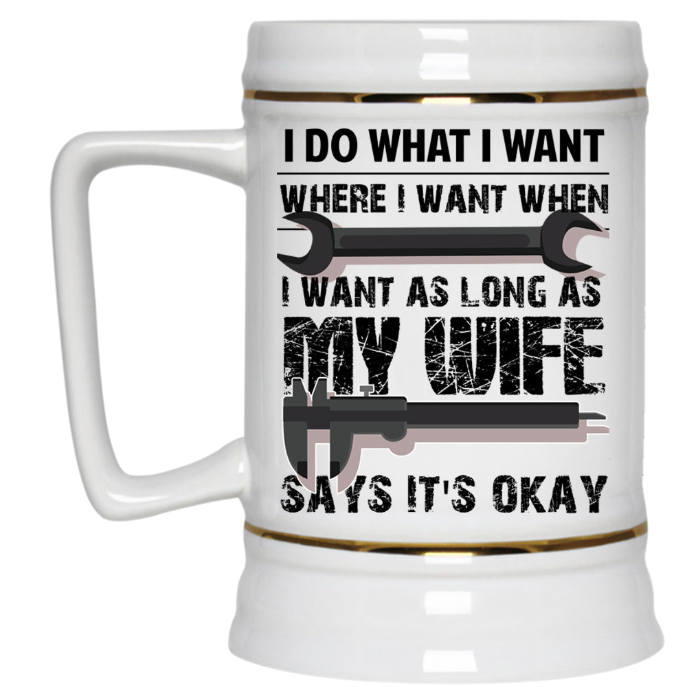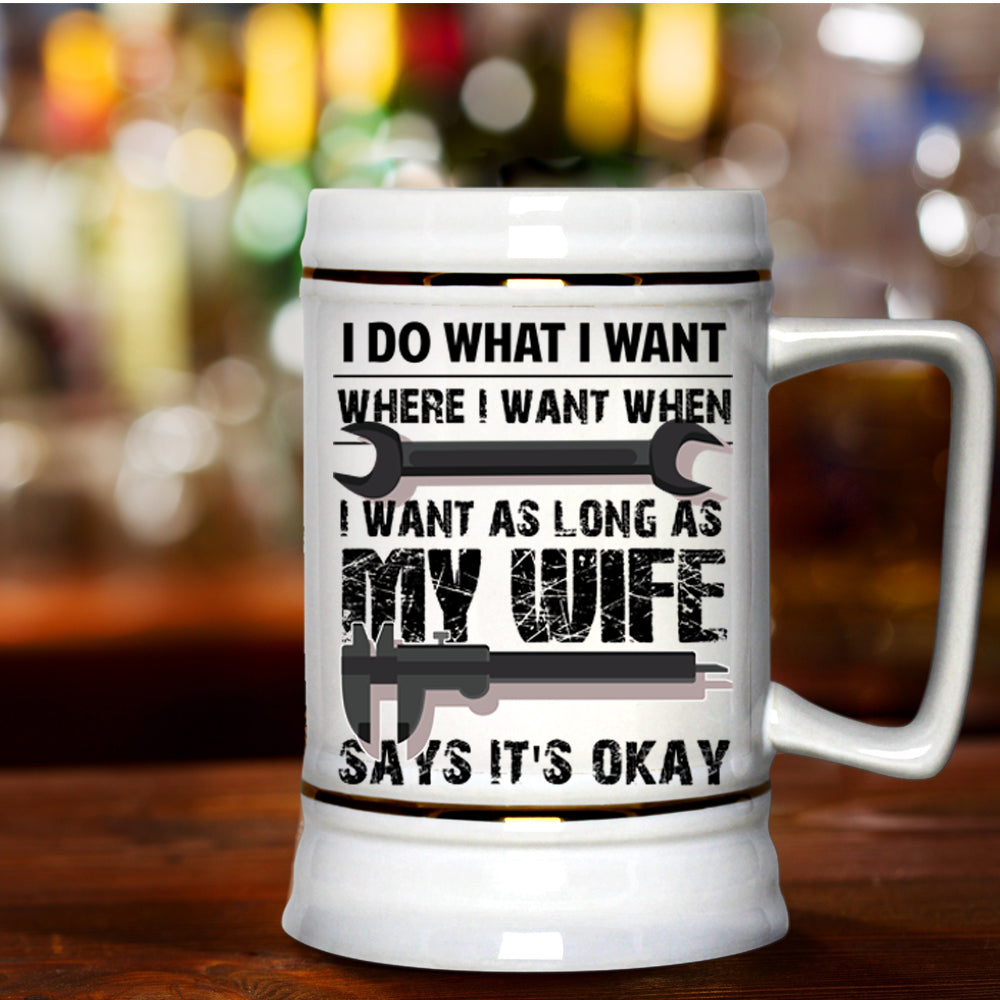 My Wife Says It's Okay Beer Stein 22oz, I Do What I Want Beer Mug