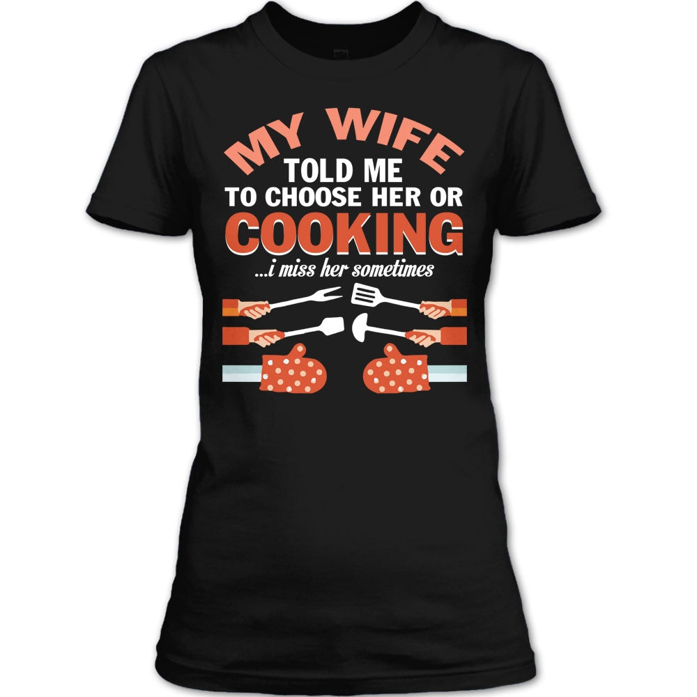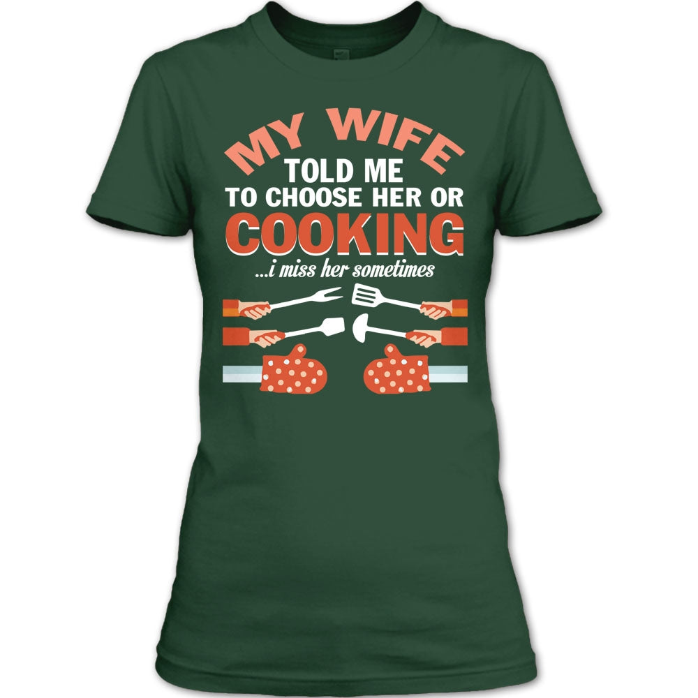 My Wife T Shirt, Told Me To Choose Her Or Cooking T Shirt