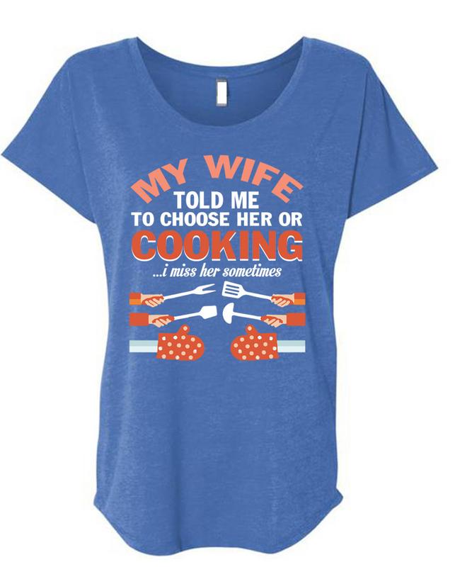 My Wife Told Me To Choose Her Or Cooking T Shirt, Being A Chef T Shirt, Cool Shirt (Ladies' Triblend Dolman Sleeve)