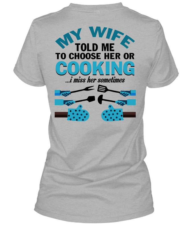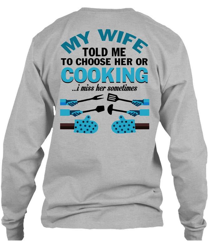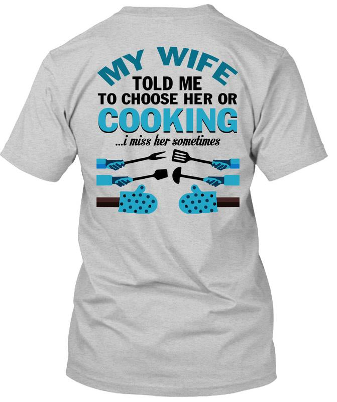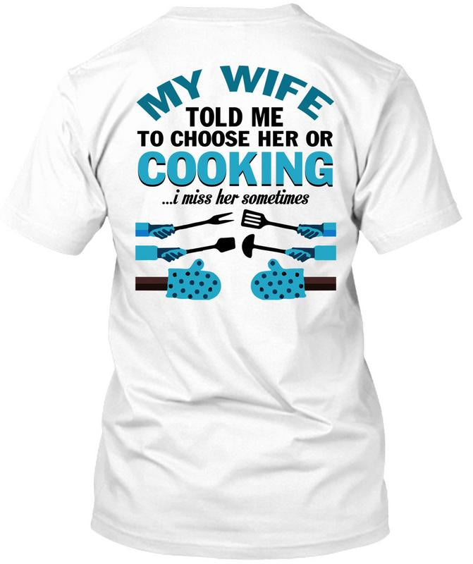 My Wife Told Me To Choose Her Or Cooking T Shirt, I Love Cooking T Shirt